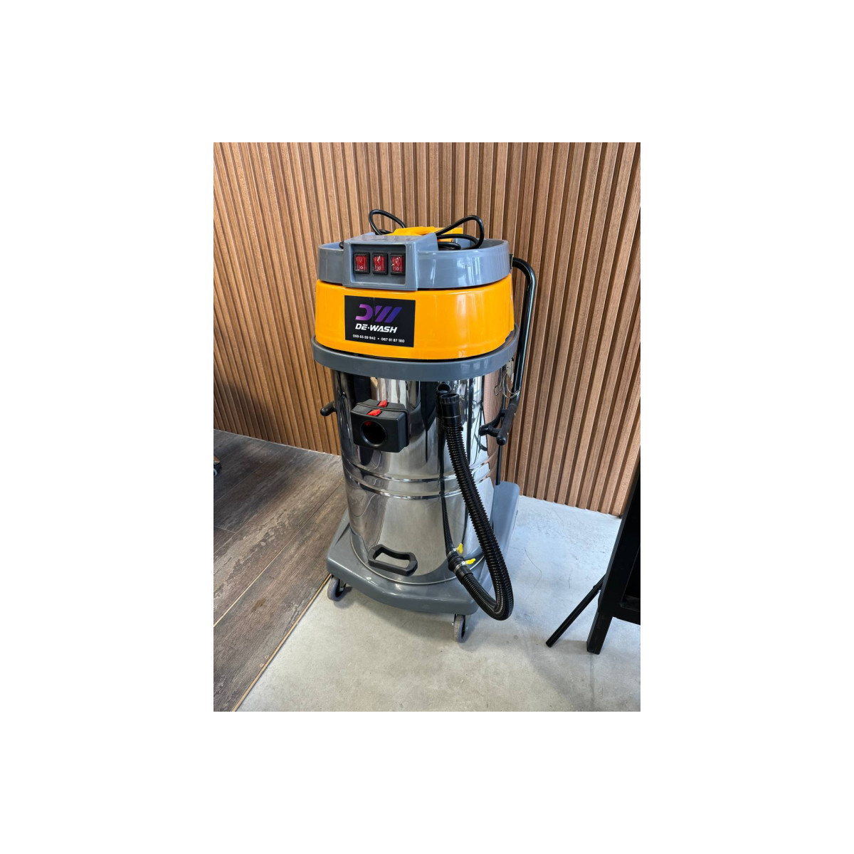 Пилосос De-Wash 4500 поєднує в собі потужність, місткість та зручність у використанні, роблячи його ідеальним вибором для будь-яких завдань з прибирання.