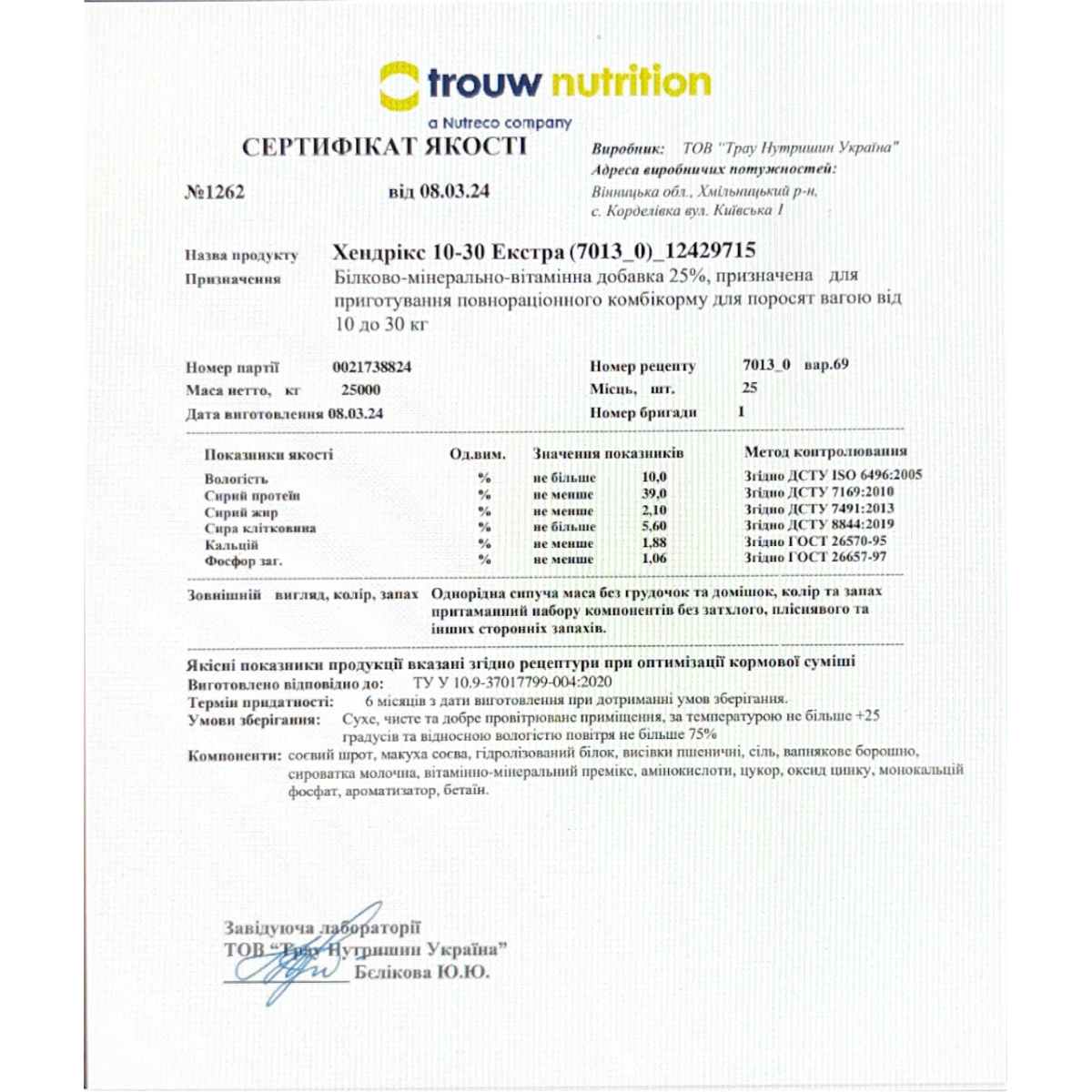Білково мінерально вітаміна добавка для поросят 10-30кг без коксидіостатика 25% БМВД Екстра (7013-0) Hendrix 25кг (Trouw Nutrition, Україна)
