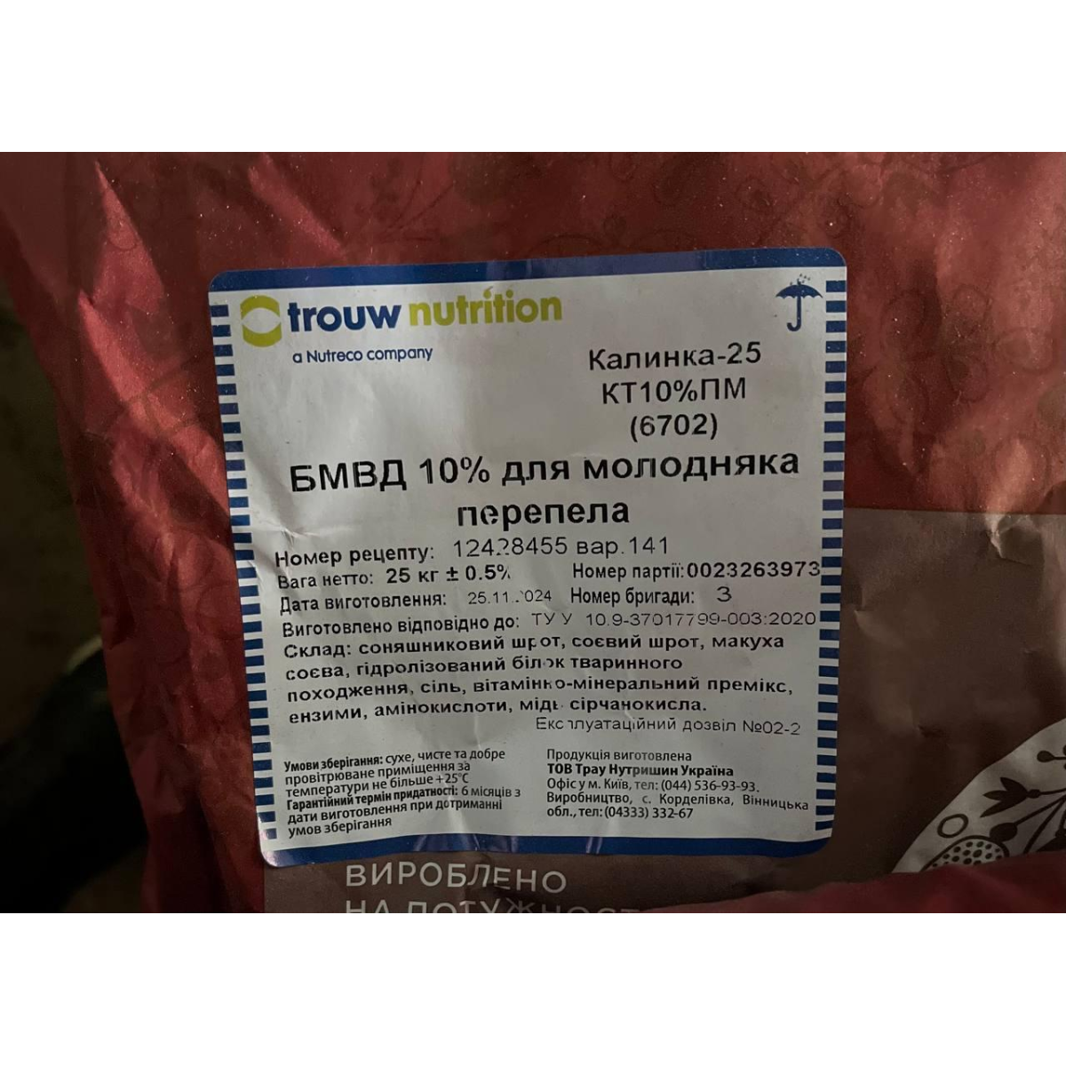 Білково мінерально вітаміна добавка БМВД для молодняка перепела 10% (6702) Калинка 25кг (Trouw Nutrition, Україна)