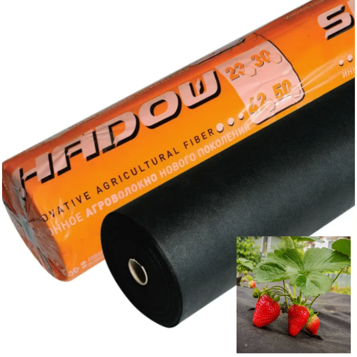Агроволокно “Shadow“ Чехія – досить щільний матеріал чорного кольору і незважаючи на свою товщину, досить щільний на розрив. Спанбонд 60 г/м2 ідеально підходить для вирощування таких культур: малини, огірків, помідорів. Є гарним захистом від сонця (стійкість до ультрафіолету). Під агроволокном “Shadow“ не проростають бур“яни, оскільки воно не пропускає прямі сонячні промені, ідеально підходить для мульчування полуниці і ландшафтного дизайну.