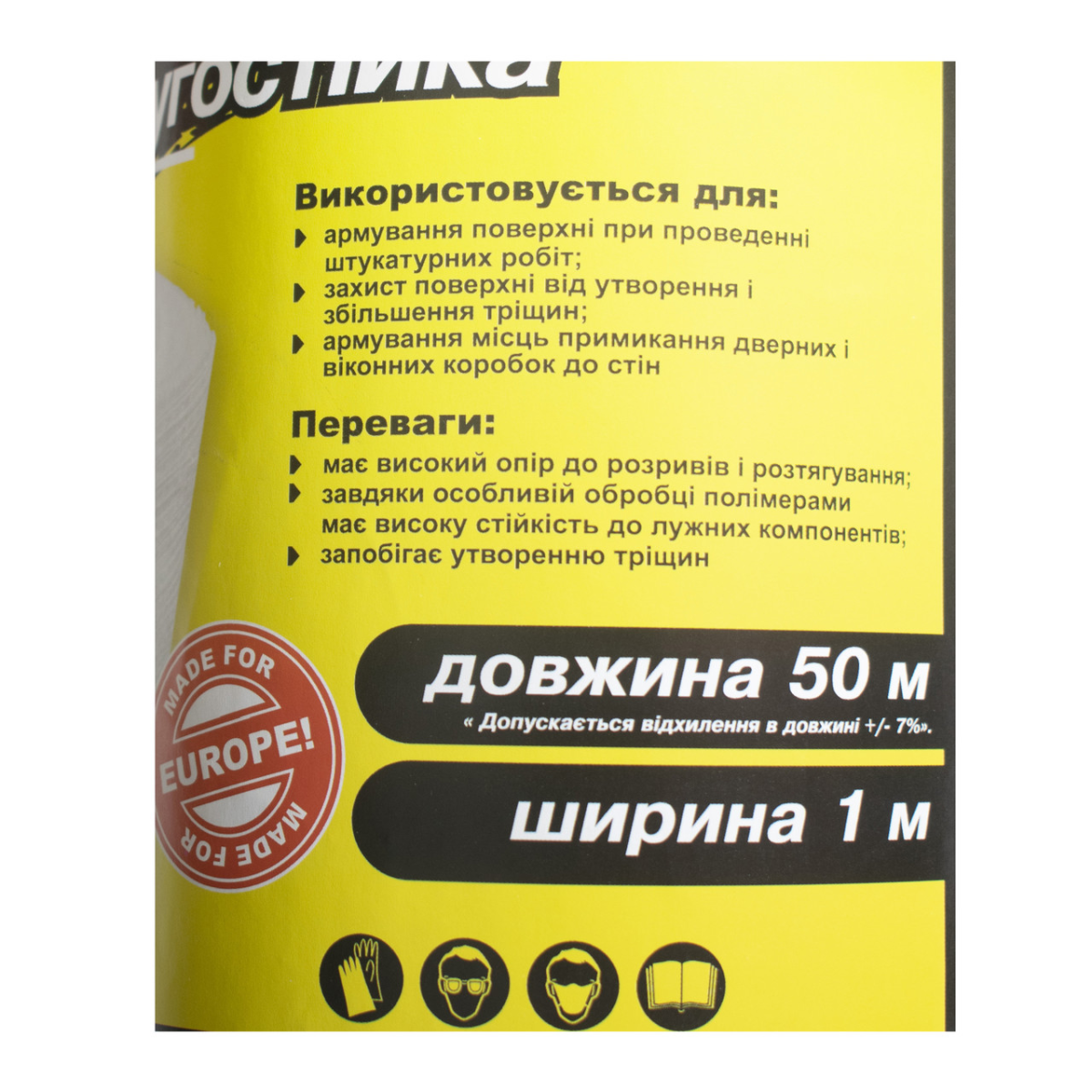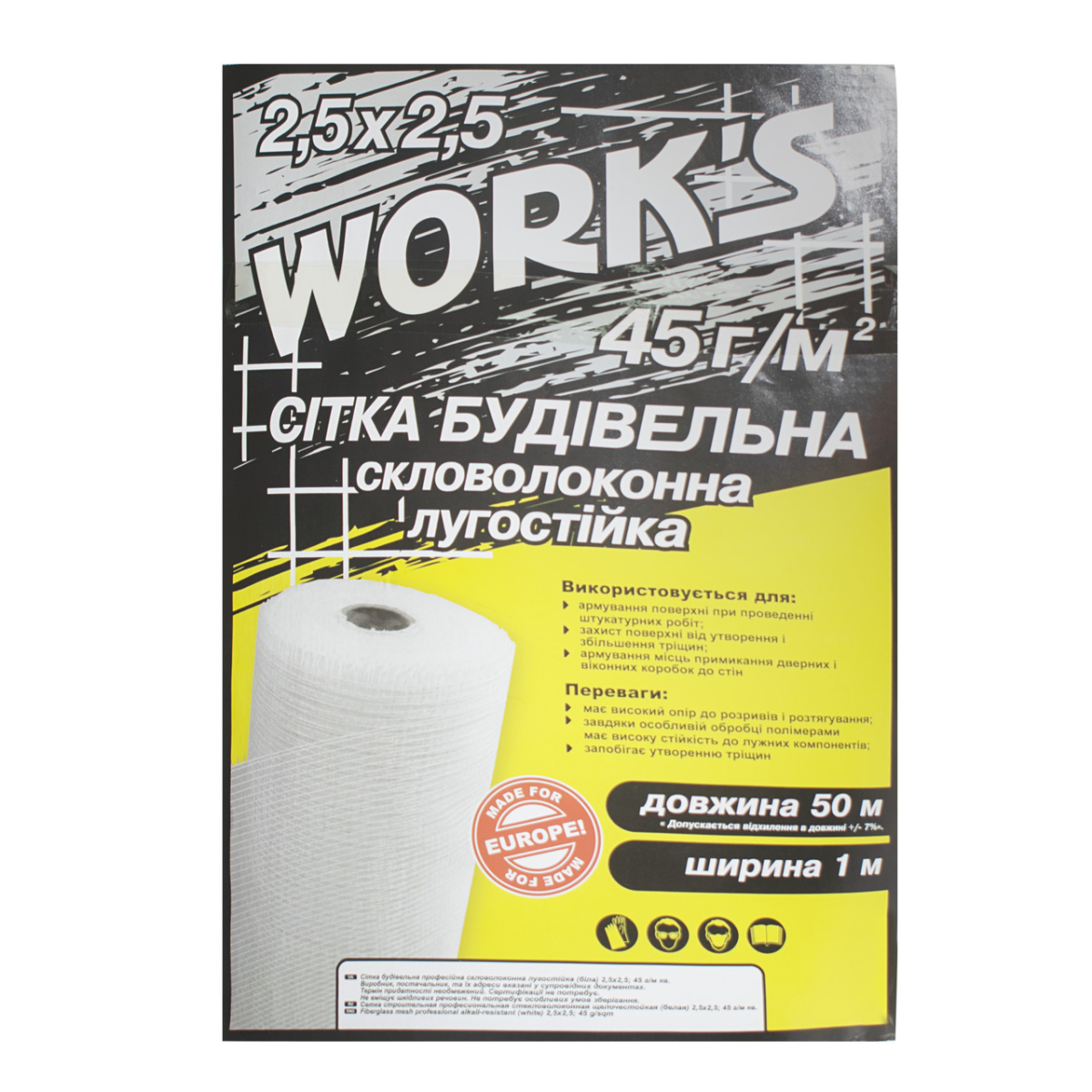 Скловолоконна сітка 45 г/м2 1 м х 50 м біла фасадна WORKS