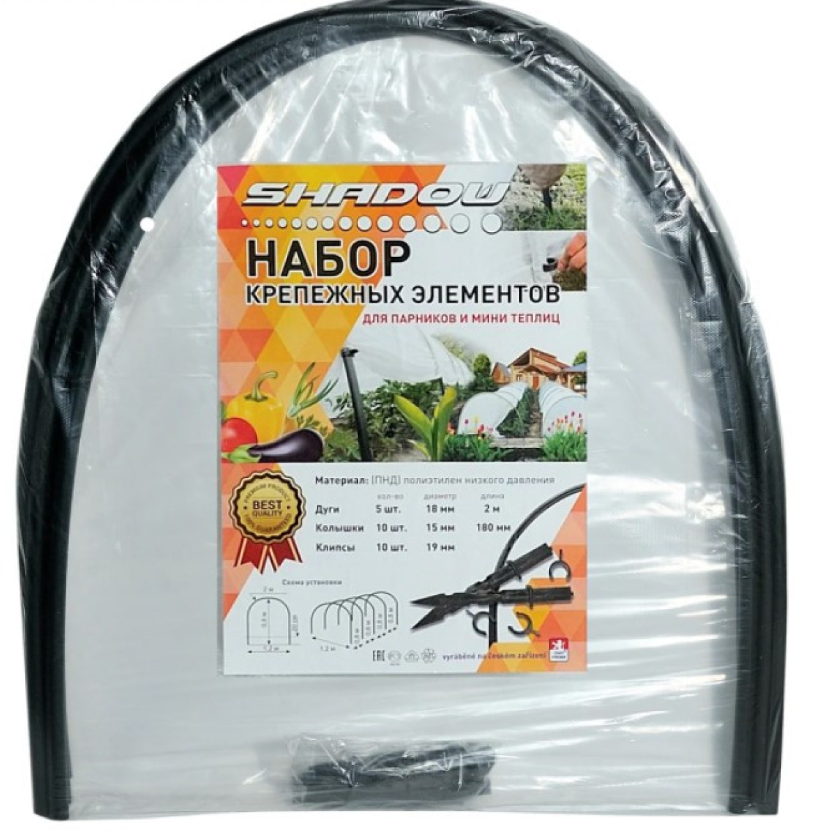 Комплект (кілочки 10 + кліпси 10 + дуги 5) для парника-теплиці, комплект для збирання парника з дуг
