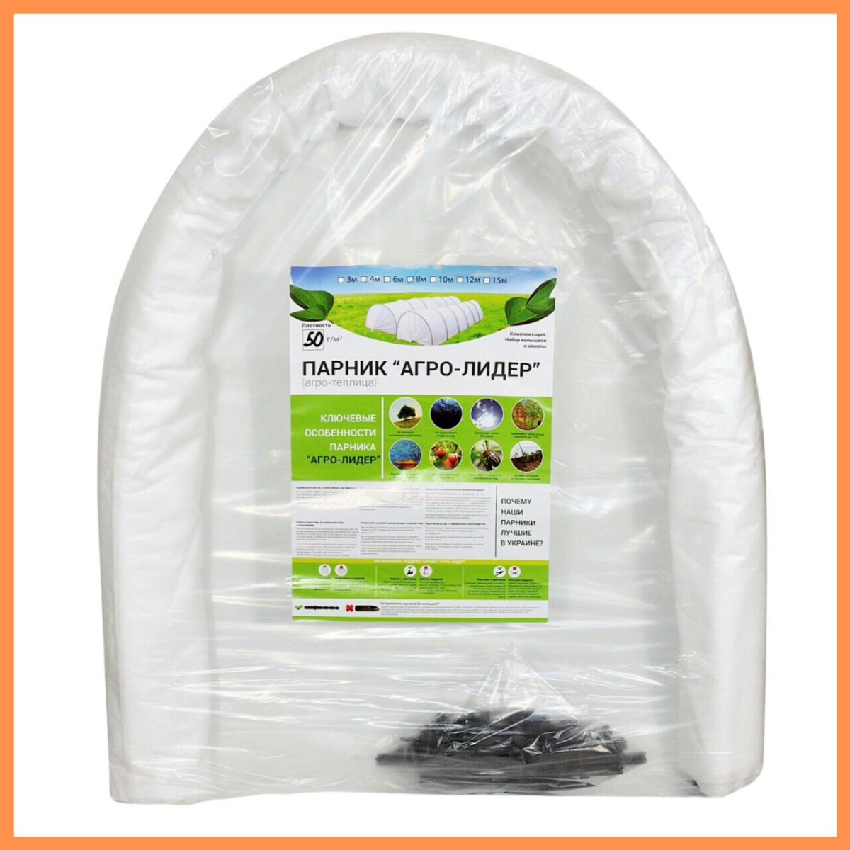 Парник 4 м 42 г/м2 “Агро-Лідер“ для розсади овочів, дачна розбірна теплиця з спанбонду