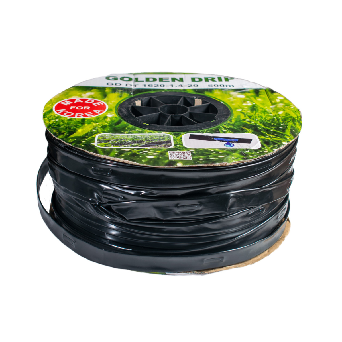 Пропонуємо вам — крапельну еміттерну стрічку. Емітерна крапельна стрічка має вбудовані по всій довжині на рівній відстані плоскі крапельниці (емітери), напір струменя всередині яких регулюється спеціальним лабіринтом. Лабіринт створює турбулентний водний потік, завдяки чому він самоочищається від різних домішок, даючи змогу уникнути закупорювання крапельниць і утворення нальоту. Застосовується для вирощування рослин із довгим періодом дозрівання, може використовуватися вдруге у разі дбайливого поводження, промивання та сушіння наприкінці сезону. Стрічка має щільну стінку, її можна укладати в ґрунт, де каміння та груди. Використовують: - для поливних ліній дуже великої довжини, - для джерел води з низькою продуктивністю, — для ґрунтів із низькою швидкістю зволоження. Важливо встановлювати імітрами вгору не тягнути по землі використовувати під час робочого тиску для товщини трубки 8 mil (0,2 мм) 0,7-1,0 барів Купуючи еміттерну крапельну ленту для поливання рослин за цінами виробника ви неабияк заощаджуєте свій час і ресурси.