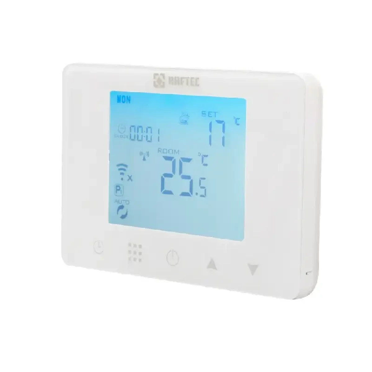 Raftec R09RF - бездротовий, електронний терморегулятор, застосовується в системах опалення на основі газових та електричних котлів. Забезпечує контроль та підтримання комфортної кімнатної температури у приміщенні.