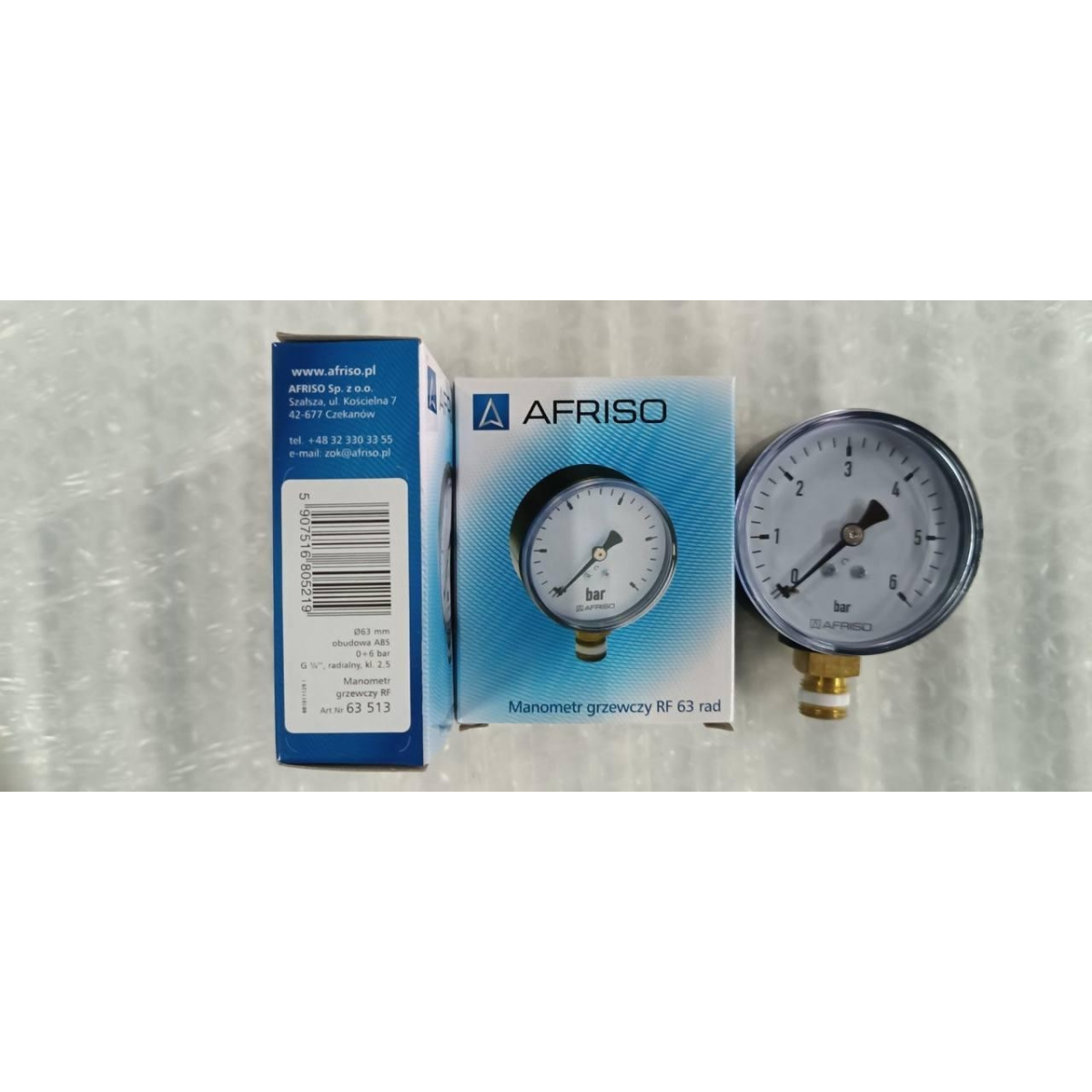 Манометр для тиску води AFRISO RF на 6 бар з нижнім підключенням 1/4“ Ø63 мм 63513