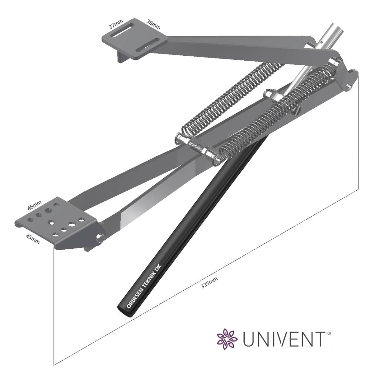 Автоматичний віконний відкривач для теплиць UNIVENT все найцікавіше тут - відповіді на запитання тут - +38 097 808 17 40 UNIVENT – АВТОМАТИЧНИЙ ВІКОННИЙ ВІДКРИВАЧ ДЛЯ ТЕПЛИЦЬ Автоматичний віконний відкривач UNIVENT – це компактний та потужний відкривач. У ньому використовується наш стандартний гідравлічний циліндр, який широко застосовується і чудово зарекомендував себе, який протягом багатьох років підтвердив свою якість і довговічність. Віконний відкривач Univent має високий ступінь універсальності. Характерні властивості даного відкривача: • Компактність • Інноваційна проста система встановлення • Подвійна пружина Інноваційна система встановлення дозволяє легко від“єднувати один кінець відкривача. Не потрібно жодних інструментів та складних процедур. Ви просто від“єднуєте один кінець, і вам відкривається доступ через розсувні двері до теплиці або доступ до парника – навіть якщо двері або кришка парника закриті внаслідок односторонньої дії гідравлічного циліндра. Просто від“єднайте один кінець та відкрийте! Конструкція відкривача дозволяє дуже легко встановити потужнішу пружину, щоб досягти більшої потужності закривання. Будь ласка, зверніться до нашого інтернет-магазину для отримання додаткової інформації. Відкривач Univent має широкий спектр використання, але найчастіше відкривачі використовуються у таких випадках: Вікна у теплицях: Як і всі інші віконні відкривачі марки J. OrbesenTeknikApS, відкривач Univent зазвичай використовується для відкривання вікон у теплицях. Конструкція з подвійними пружинами робить його дуже придатним для легких вікон, тому що обмежена вага вікна сама по собі не сприяє закриттю. Парники: Завдяки своїй компактній конструкції, відкривач Univent ідеально підходить для відкриття кришки парника. Відкривач майже не займає місця всередині парника, залишаючи достатньо місця для рослин. Крім того, системи простого відкривання забезпечують легкий і швидкий доступ до парника. Розсувні двері: Завдяки простоті системи відкривач Univent добре підходить для розсувних дверей у теплиці. Це може знадобитися, якщо у теплиці немає вікон або для більшої вентиляції і т. д. Завдяки системі Easy-Clip доступ через двері стає набагато простіше і швидше. Виробник: компанія J. Orbesen Teknik. (Данія) Термін придатності: необмежений. Країна виробник Данія Характеристики Максимальне відкриття 45 см Матеріал циліндра Алюмінієвий сплав Матеріал штока Сталь з алюмінієво-цинковим покриттям Сила відкриття 15 кг Температурний діапазон відкривання 17-25 *С максимальна температура відкривання 30 *С У наc Ви можете придбати товар та замовити доставку в будь-який населений пункт України. Ціни? - Вас приємно здивують Наша цінова пропозиція на даний момент є найбільш вигідною на ринку. Звертайтеся та відчуйте всі переваги нашої професійної команди. autorainpro.com.ua З нами співпрацювати - максимально легко!