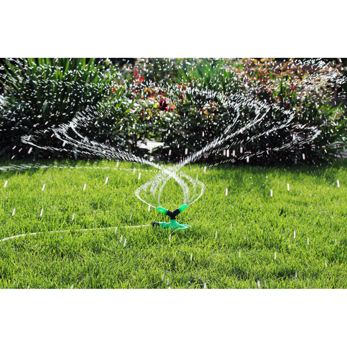 Особливості Дощівник круговий Presto-PS Ірис (2915) використовується для зрошення газонів середньої та невеликої площі, підійде також для поливання городу. Ці дощівники розбризкують воду тонкими струменями й одночасно обертаються навколо своєї осі, імітуючи природний дрібний дощ, й обробляють сектор ділянки зон захватом 360° за діаметра покриття до 11 метрів. Максимальна площа поливу становить 95 м^2. Сопла поворотні та дають змогу регулювати швидкість обертання дощівника. Під“єднуються до садових шлангів діаметром 1/2, 5/8 і 3/4 дюйма за допомогою стандартних конекторів. Рекомендований робочий тиск у системі від 2 до 4 атмосфер. Витрата води за тиску 2 атмосфери до 0,8 м^3/год. Під час розрахунку кількості дощівників, необхідних на Вашу площу поливу, потрібно враховувати наявність “мертвої зони“ під самим дощівником діаметром 2,4 метра і відповідно підбирати відстань між ними. Виготовлений дощівник із якісного ПВХ, довговічний, стійкий до впливу ультрафіолету та водорозчинних добрив. Переваги Простота встановлення; Висока ефективність і рівномірність поливання; Поворотні сопла для точного налаштування; Дає змогу вносити водорозчинні добрива; Збереження оптимального рівня вологості ґрунту та повітря. Коротка інструкція з монтажу дощівників: Під“єднати гнучкий садовий шланг через кран и стандартний конектор до джерела водопостачання; За допомогою другого конектора під“єднати шланг до дощівника; Встановити дощівник на місце поливання; Відрегулювати сопла; Подати воду в систему.