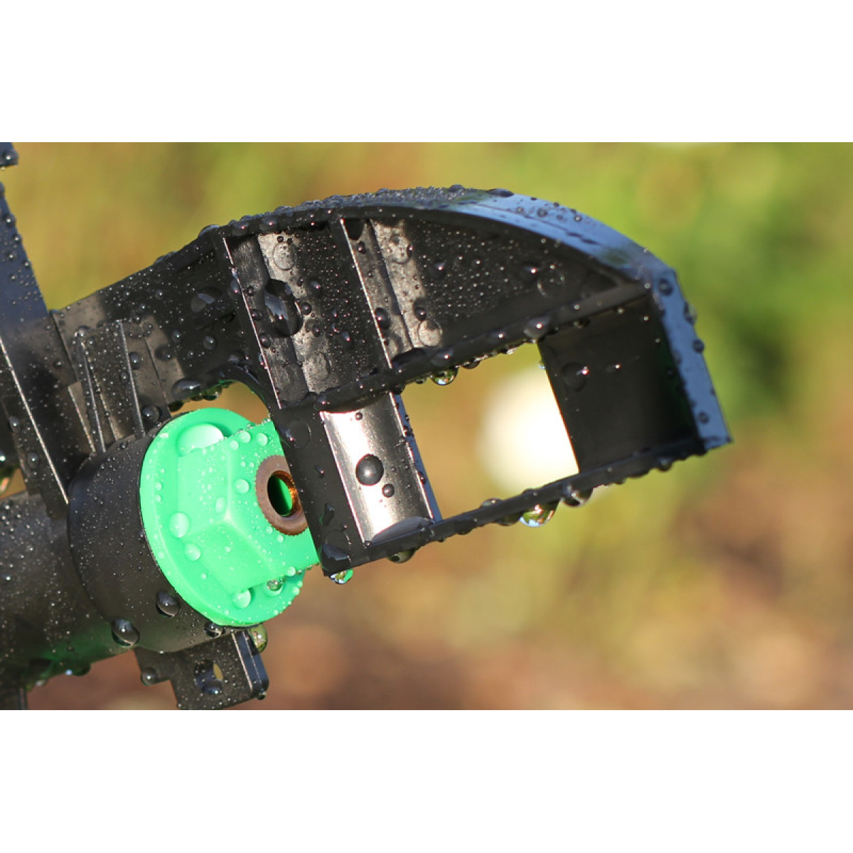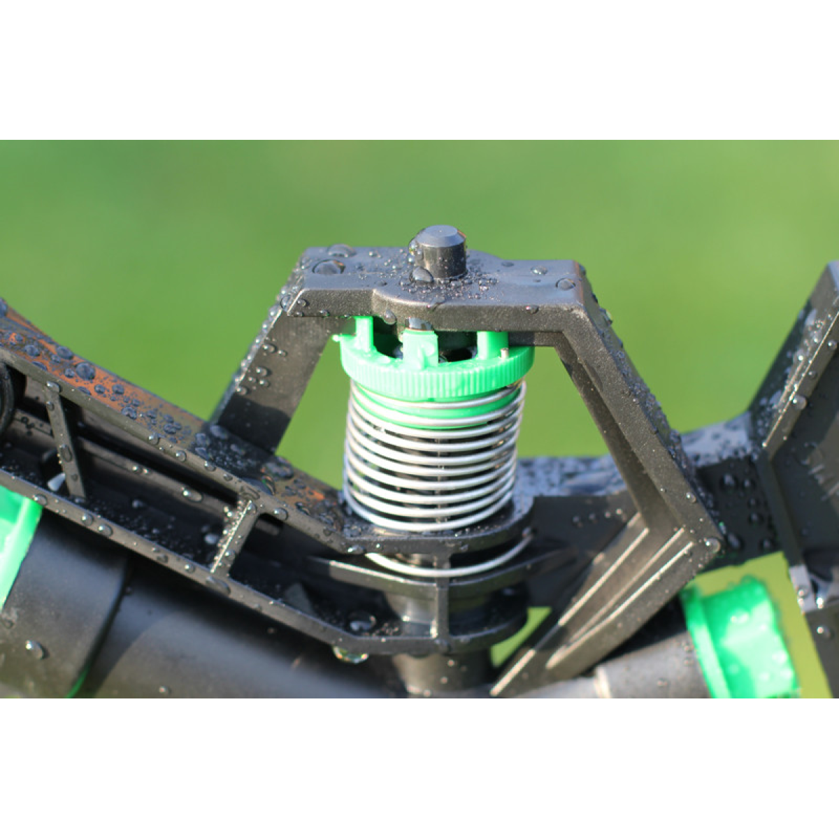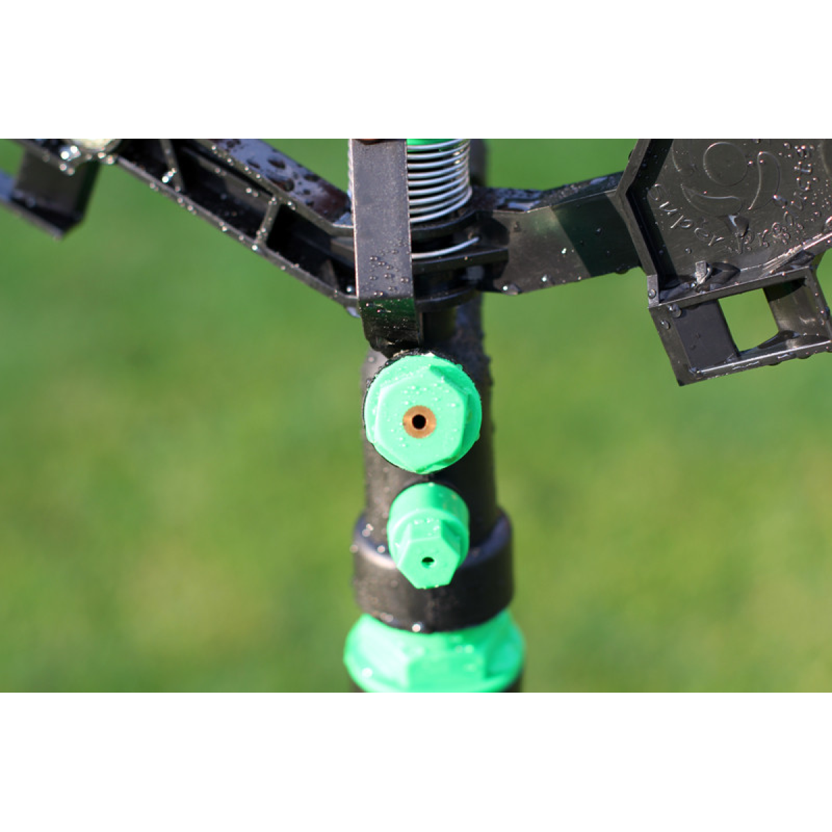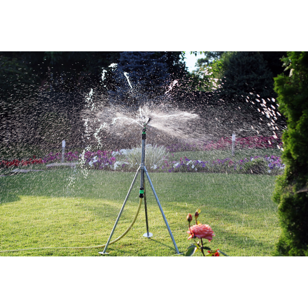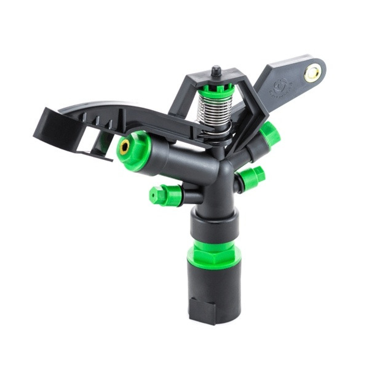 Підключити гнучкий садовий шланг діаметром 1 дюйм через кран до джерела водопостачання; За допомогою різьбового адаптера та конектора під“єднати шланг до триноги;Накрутити зрошувач по різьбі на триногу; Встановити триногу на місце поливу;