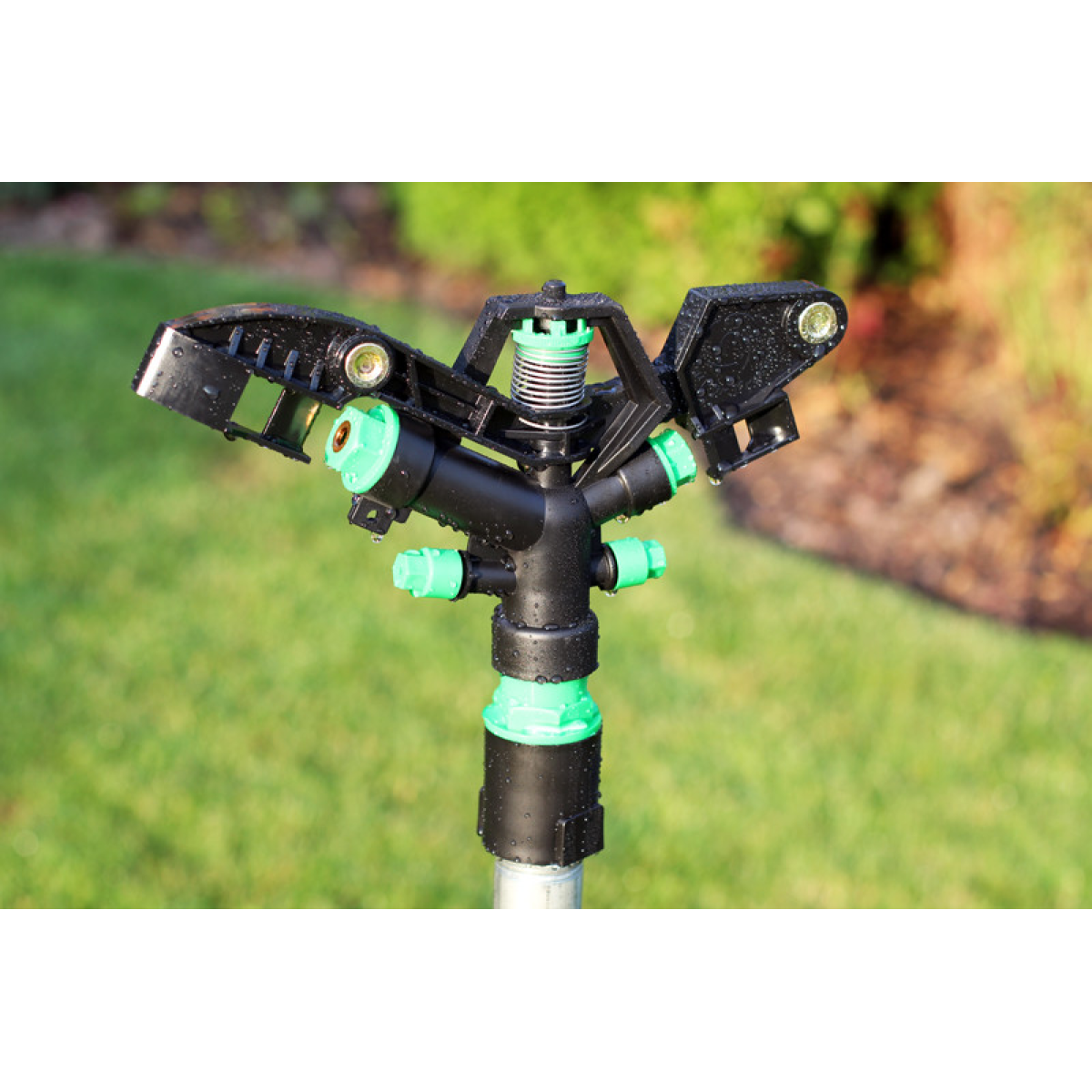 Висока ефективність і велика площа поливу;Рівномірний розподіл вологи по всій площі;Дозволяє вносити водорозчинні добрива;Збереження оптимального рівня вологості ґрунту і повітря. Коротка інструкція з монтажу імпульсного зрошувача: