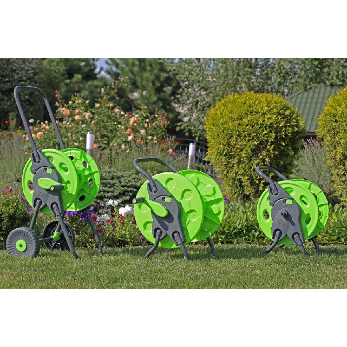 Виготовлена з первинного пластику з додаванням УФ-стабілізатора;Універсальне використання для шлангів різного діаметра;Складне руків“я для зручності зберігання;Колеса для зручності транспортування. Коротка інструкція з використання візка:
