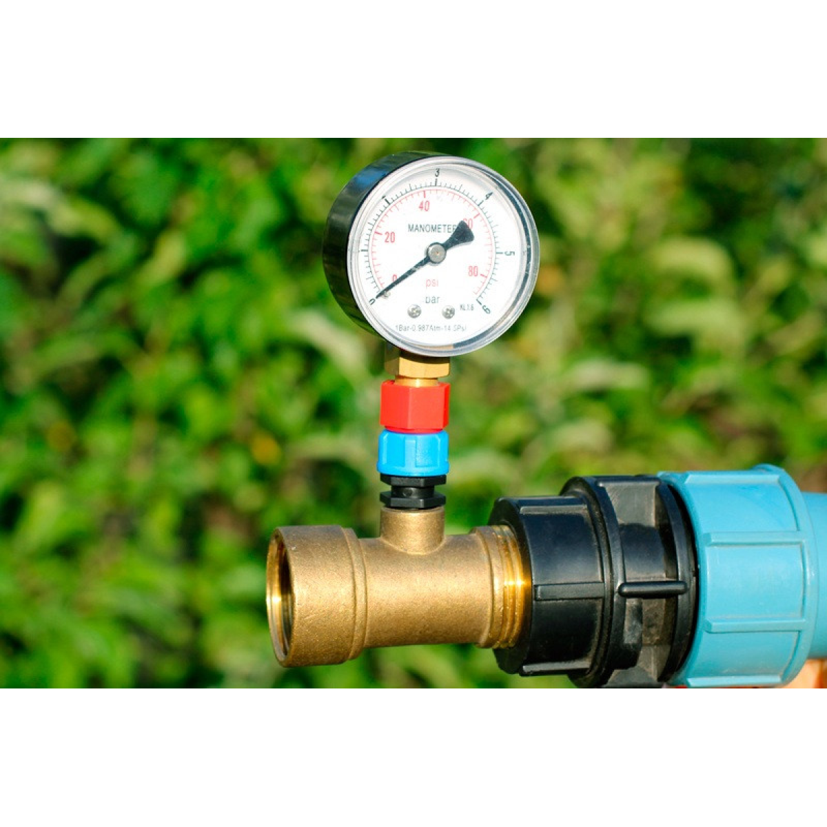 Особливості Адаптер для манометра Presto-PS (TP-0114) застосовується для побудови систем крапельного поливу. Дає змогу швидко та надійно під“єднати манометр до фільтра або до магістральної труби для контролю тиску води в системі. Процес монтажу не займає багато часу та не потребує спеціальних навичок. Адаптер виготовлений з якісного ПВХ, довговічний, стійкий до впливу ультрафіолету та перепадів температури. Переваги Виготовлені з первинного матеріалу з додаванням УФ-стабілізатора; Простота монтажу; Надійне різьбове з“єднання; Не підтікає, не потребує додаткового ущільнення. Коротка інструкція з використання адаптера для манометра: Вкрутити адаптер у фільтр або перехідник із внутрішнім різьбленням 1/4“ у магістральну трубу; Накрутити на манометр голчасту насадку;Вставити манометр голкою в адаптер; Подати воду та виміряти тиск.