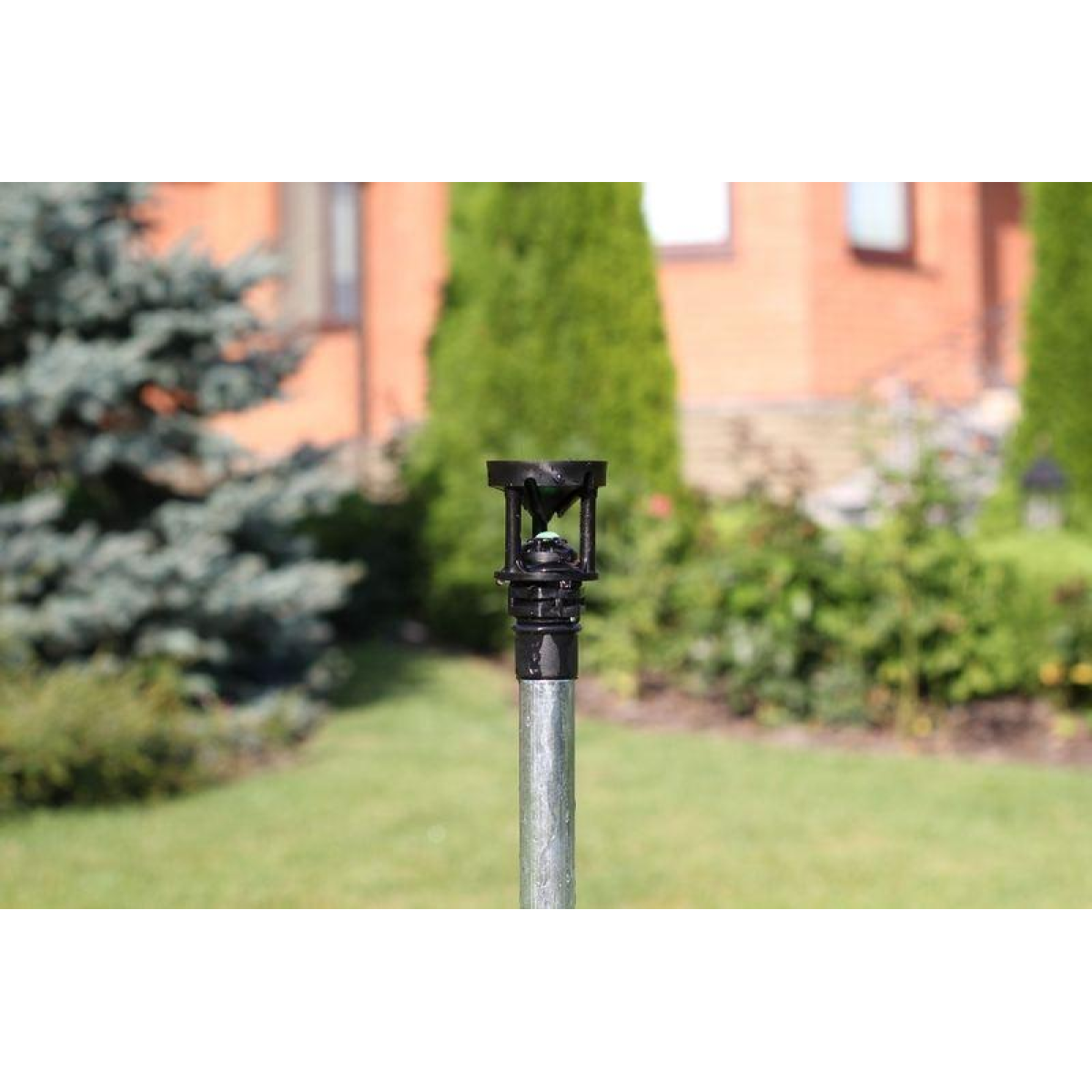 Змонтувати жорстку магістральну ПВХ трубу діаметром 19-25 мм;У передбачуваних місцях встановлення дощівників встановити вертикально в розріз магістралі крани або трійники;Змонтувати в них вертикальний відрізок ПВХ труби необхідної висоти;За допомогою фітинга з внутрішньою різзю 1/2 дюйма з“єднати трубу та дощівник;Подати воду в систему.Витрата води та діаметр поливання залежно від тискуТиск/атмосфера0,711,41,72Витрата води м^3/год0,3180,390,450,50,52Діаметр поливання за висоти 0,5 м10,711,311,711,912,2