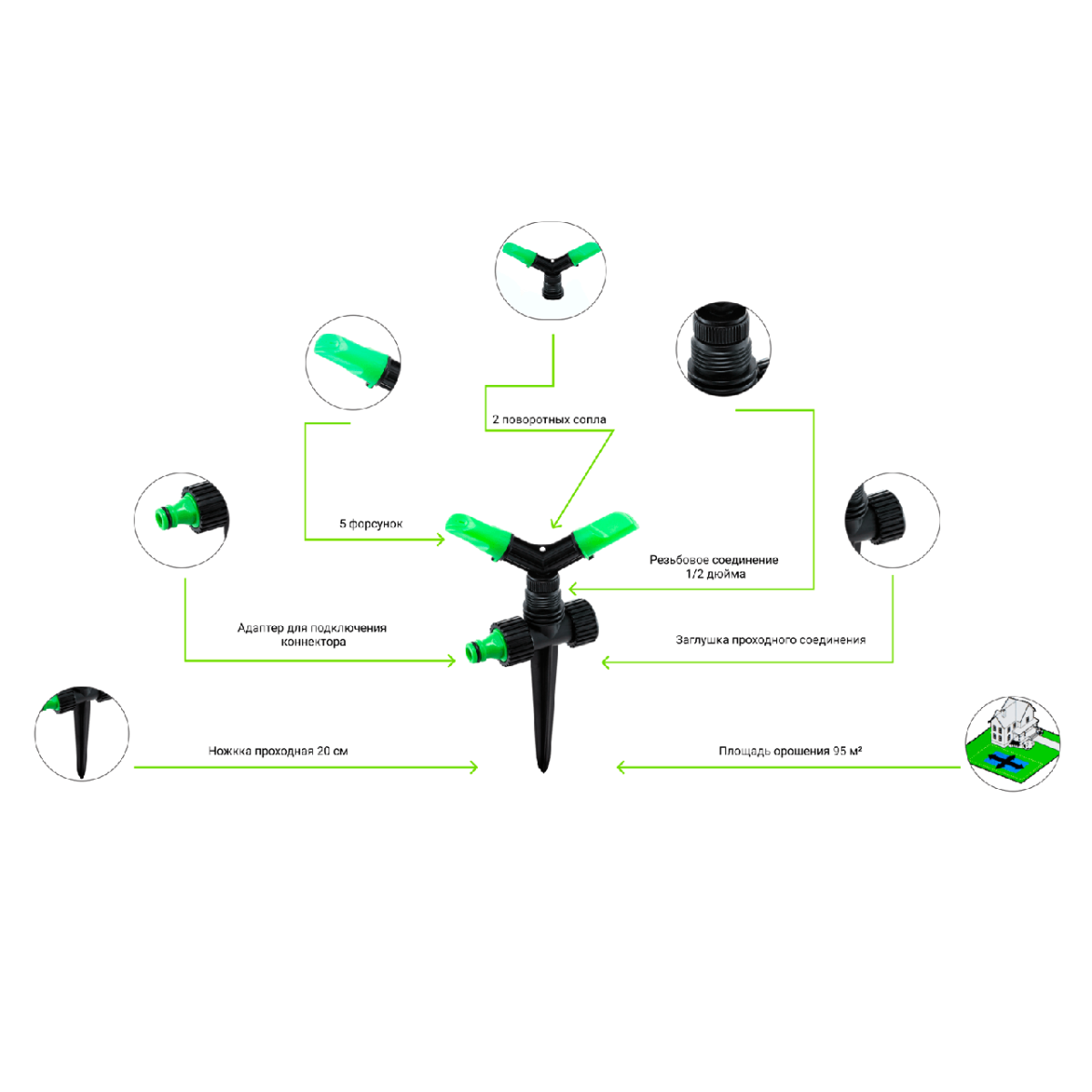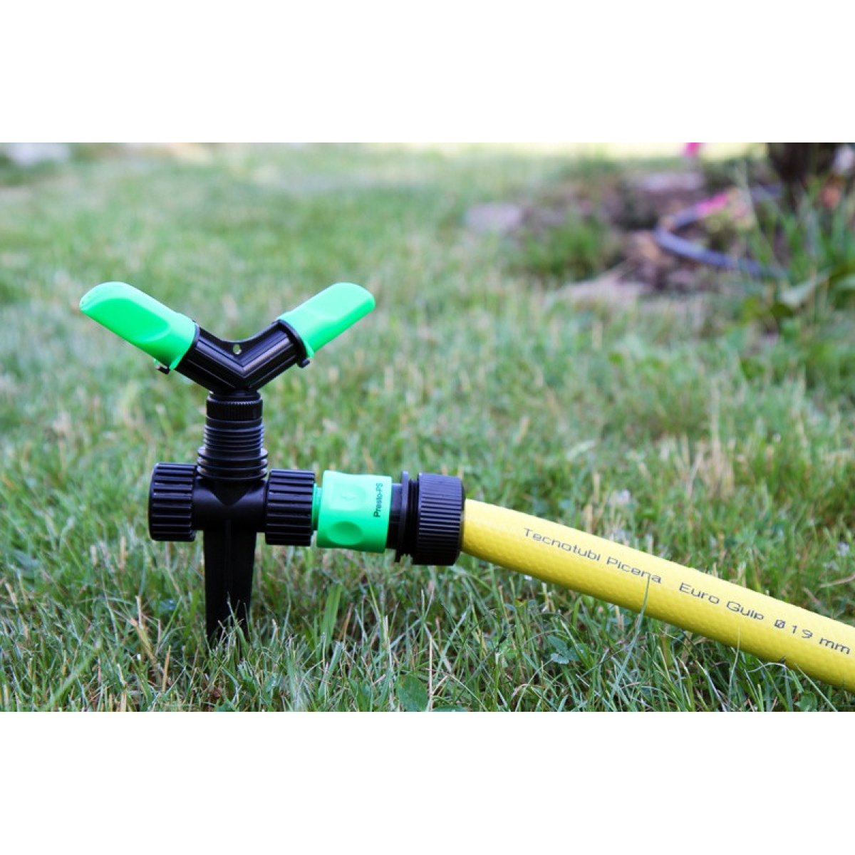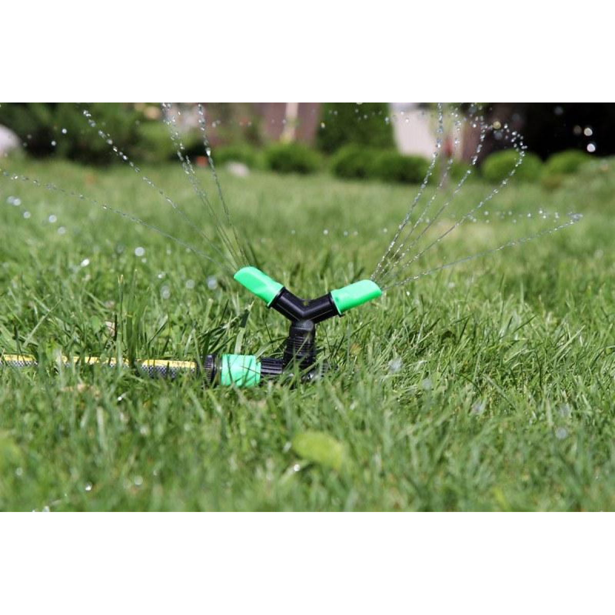 Особливості Дощівник круговий Presto-PS Ірис (2914) використовується для зрошення газонів середньої та невеликої площі, підійде також для поливання городу. Ці дощівники розбризкують воду тонкими струменями й одночасно обертаються навколо своєї осі, імітуючи природний дрібний дощ, й обробляють сектор ділянки зон захватом 360° за діаметра покриття до 11 метрів. Максимальна площа поливу становить 95 м^2. Сопла поворотні та дають змогу регулювати швидкість обертання дощівника. Під“єднуються до садових шлангів діаметром 1/2, 5/8 і 3/4 дюйма за допомогою стандартних конекторів. Рекомендований робочий тиск у системі від 2 до 4 атмосфер. Витрата води за тиску 2 атмосфери до 0,9 м^3/год. Під час розрахунку кількості дощівників, необхідних на Вашу площу поливу, потрібно враховувати наявність “мертвої зони“ під самим дощівником діаметром 2,4 метра і відповідно підбирати відстань між ними. Виготовлений дощівник із якісного ПВХ, довговічний, стійкий до впливу ультрафіолету та водорозчинних добрив. Переваги Простота встановлення; Висока ефективність і рівномірність поливання; Поворотні сопла для точного налаштування; Дає змогу вносити водорозчинні добрива; Збереження оптимального рівня вологості ґрунту та повітря. Коротка інструкція з монтажу дощівників: Під“єднати гнучкий садовий шланг через кран и стандартний конектор до джерела водопостачання; За допомогою другого конектора під“єднати шланг до дощівника; Встановити дощівник на місце поливання; Відрегулювати сопла; Подати воду в систему.