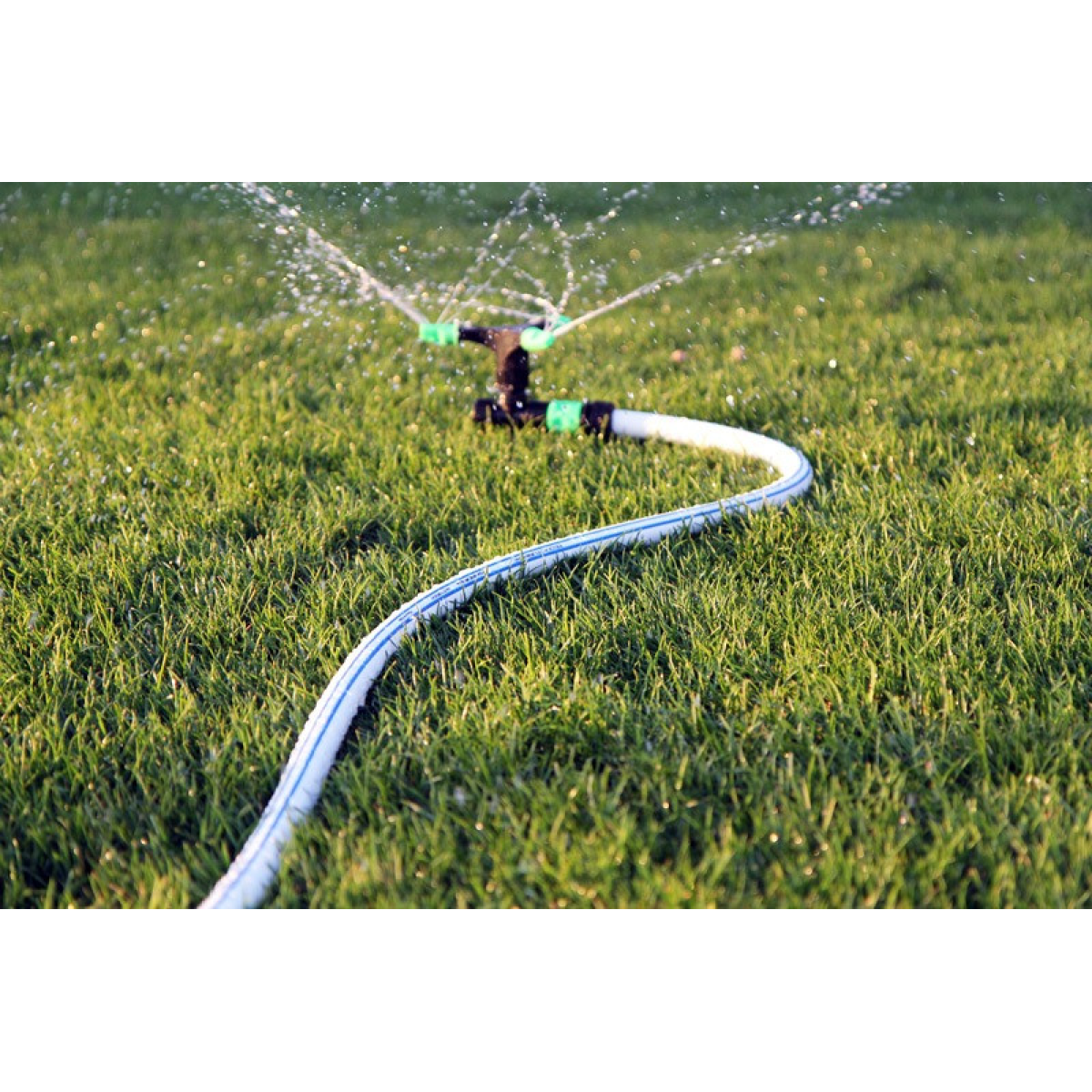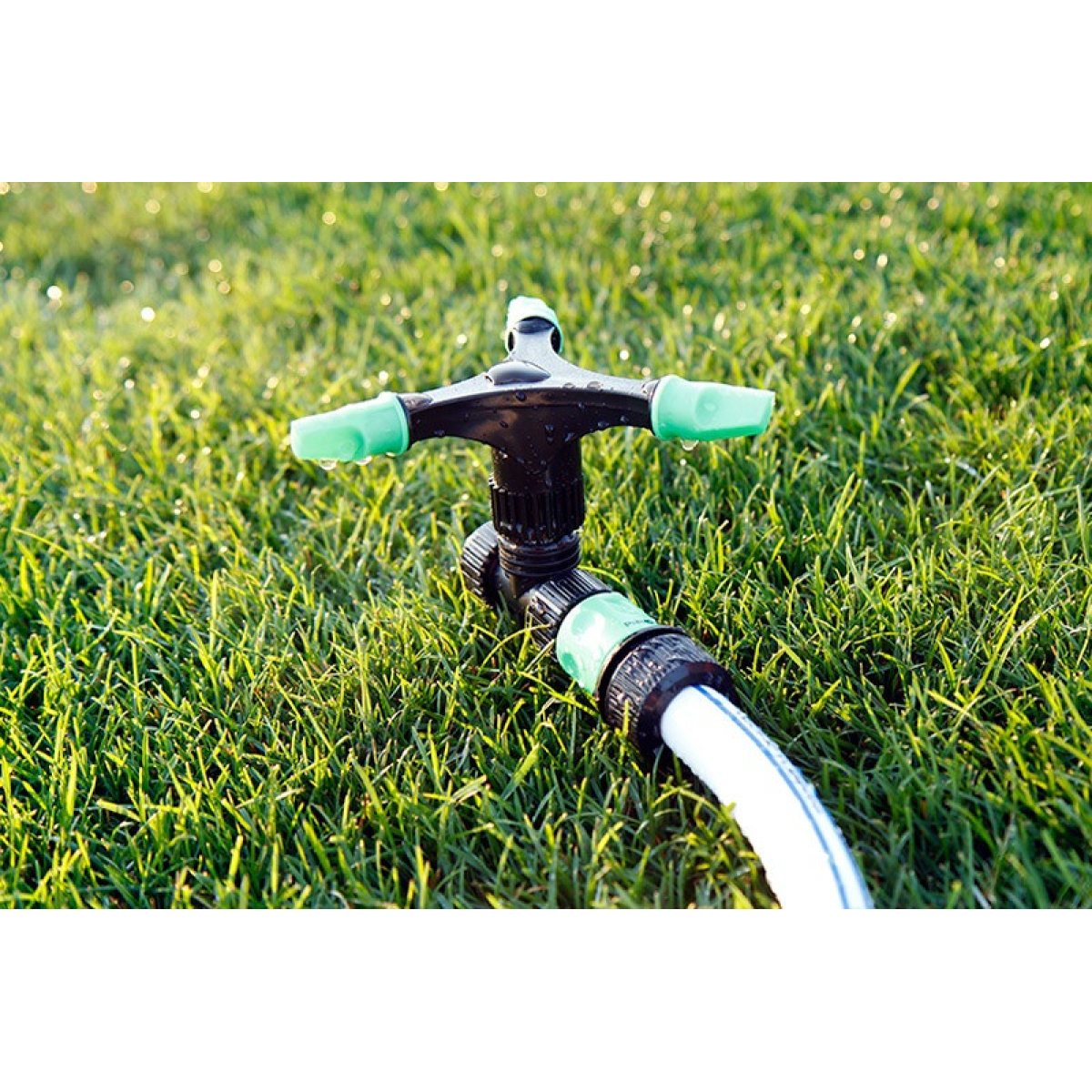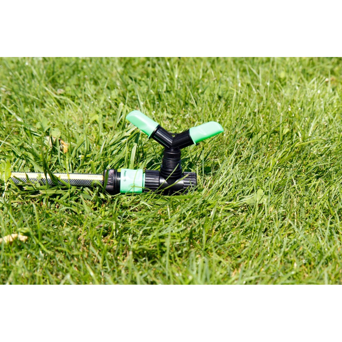 Особливості Дощівник круговий Presto-PS Ірис (2914) використовується для зрошення газонів середньої та невеликої площі, підійде також для поливання городу. Ці дощівники розбризкують воду тонкими струменями й одночасно обертаються навколо своєї осі, імітуючи природний дрібний дощ, й обробляють сектор ділянки зон захватом 360° за діаметра покриття до 11 метрів. Максимальна площа поливу становить 95 м^2. Сопла поворотні та дають змогу регулювати швидкість обертання дощівника. Під“єднуються до садових шлангів діаметром 1/2, 5/8 і 3/4 дюйма за допомогою стандартних конекторів. Рекомендований робочий тиск у системі від 2 до 4 атмосфер. Витрата води за тиску 2 атмосфери до 0,9 м^3/год. Під час розрахунку кількості дощівників, необхідних на Вашу площу поливу, потрібно враховувати наявність “мертвої зони“ під самим дощівником діаметром 2,4 метра і відповідно підбирати відстань між ними. Виготовлений дощівник із якісного ПВХ, довговічний, стійкий до впливу ультрафіолету та водорозчинних добрив. Переваги Простота встановлення; Висока ефективність і рівномірність поливання; Поворотні сопла для точного налаштування; Дає змогу вносити водорозчинні добрива; Збереження оптимального рівня вологості ґрунту та повітря. Коротка інструкція з монтажу дощівників: Під“єднати гнучкий садовий шланг через кран и стандартний конектор до джерела водопостачання; За допомогою другого конектора під“єднати шланг до дощівника; Встановити дощівник на місце поливання; Відрегулювати сопла; Подати воду в систему.