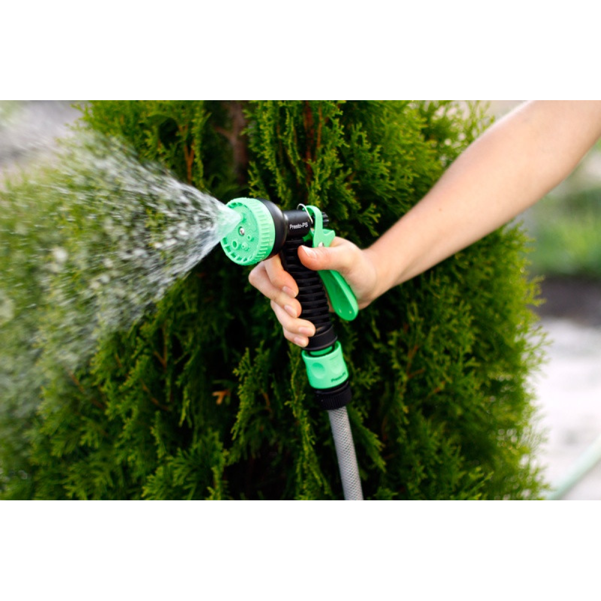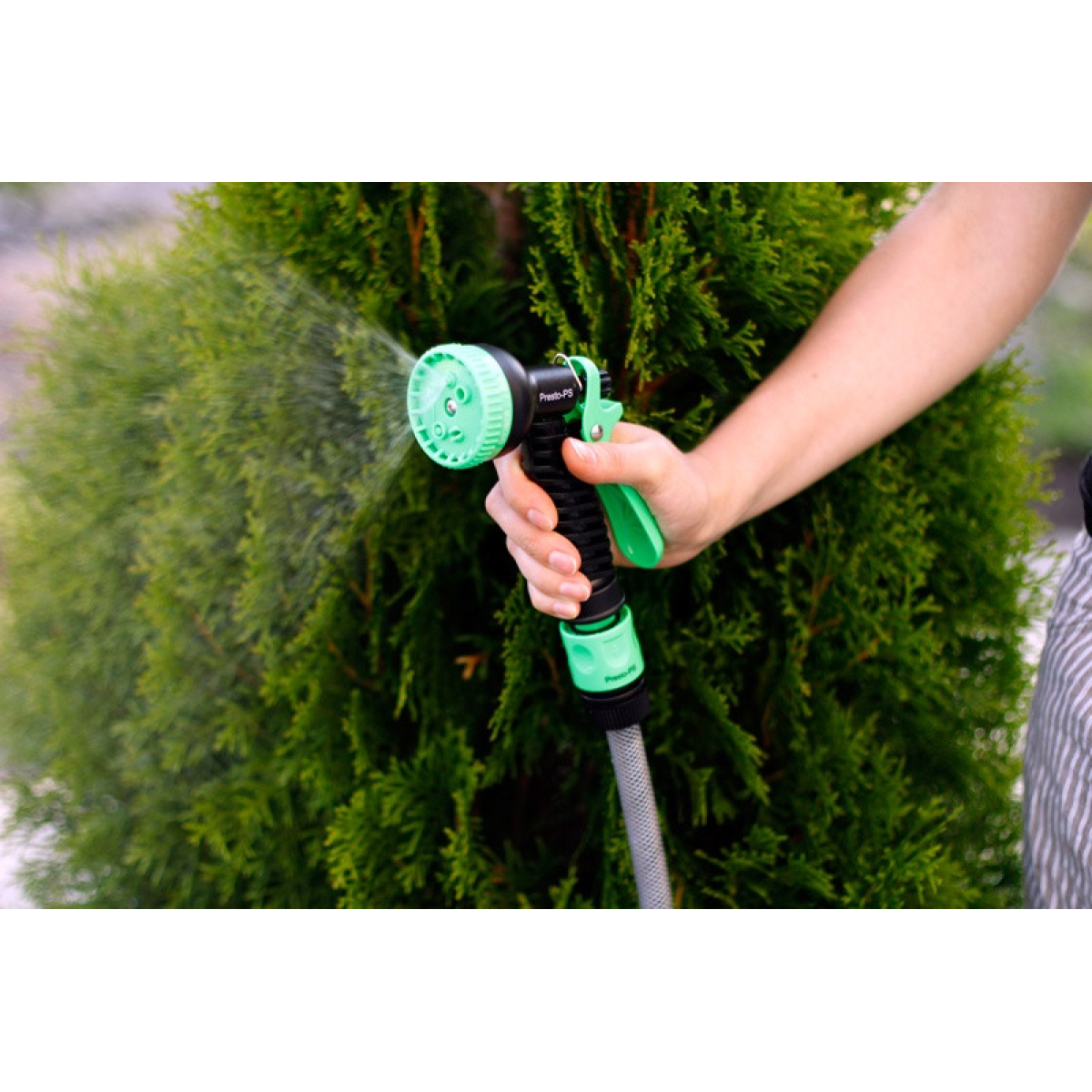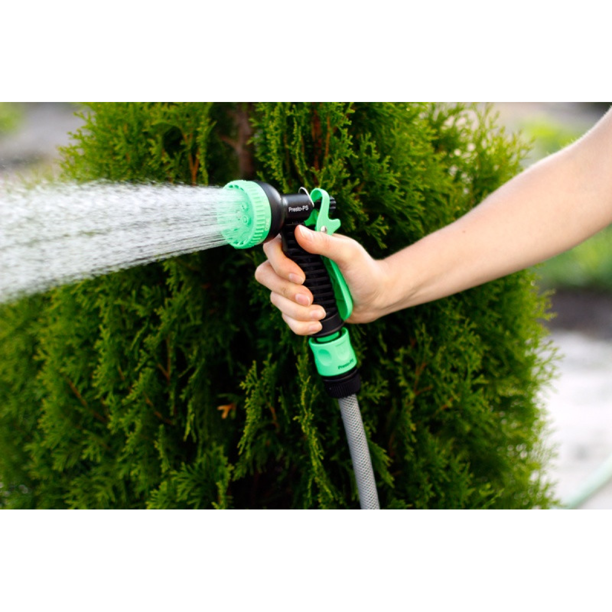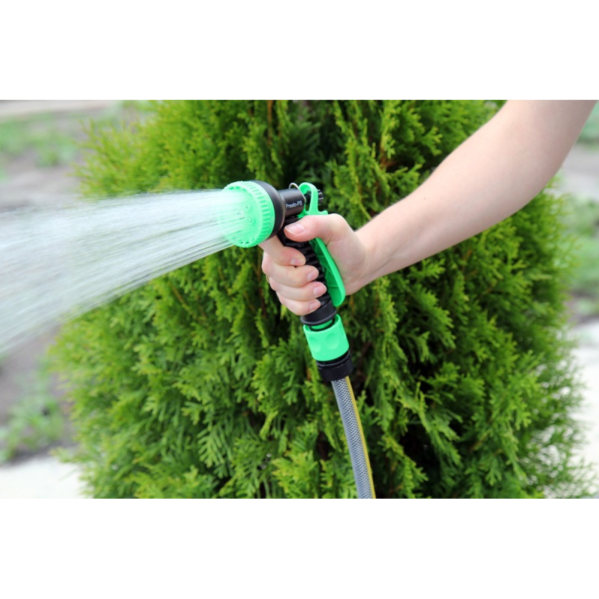 Пістолет для поливу Presto-PS (2109) використовується для ручного поливу газонів середньої та невеликої площі, городів, квітників, прибирання доріжок на прибудинковій території, миття садового інвентарю та техніки. Поворотна головка пістолета має 7 положень і регулює форму струменя і ступінь розпилення води. Можливі режими поливу: м“який струмінь, жорсткий струмінь, конус, туман, душ, проливний дощ, плоский горизонтальний. Підключається до садових шлангів діаметром 1/2, 5/8 і 3/4 дюйма за допомогою стандартних конекторів. Рекомендований робочий тиск у системі від 2 до 4 атмосфер. Виготовлений поливальний пістолет з якісного пластику, довговічний, стійкий до механічних пошкоджень, впливу ультрафіолету і водорозчинних добрив.Переваги