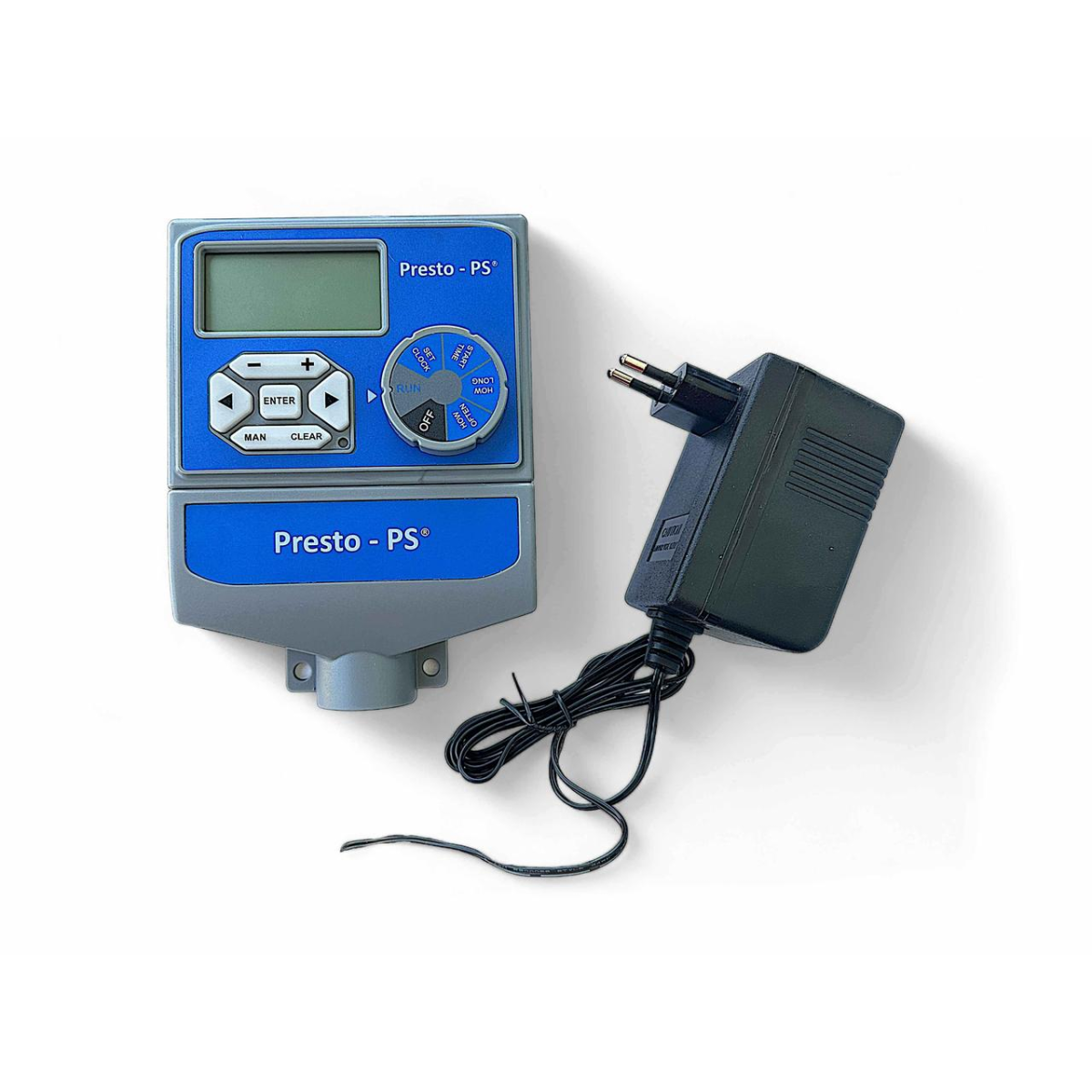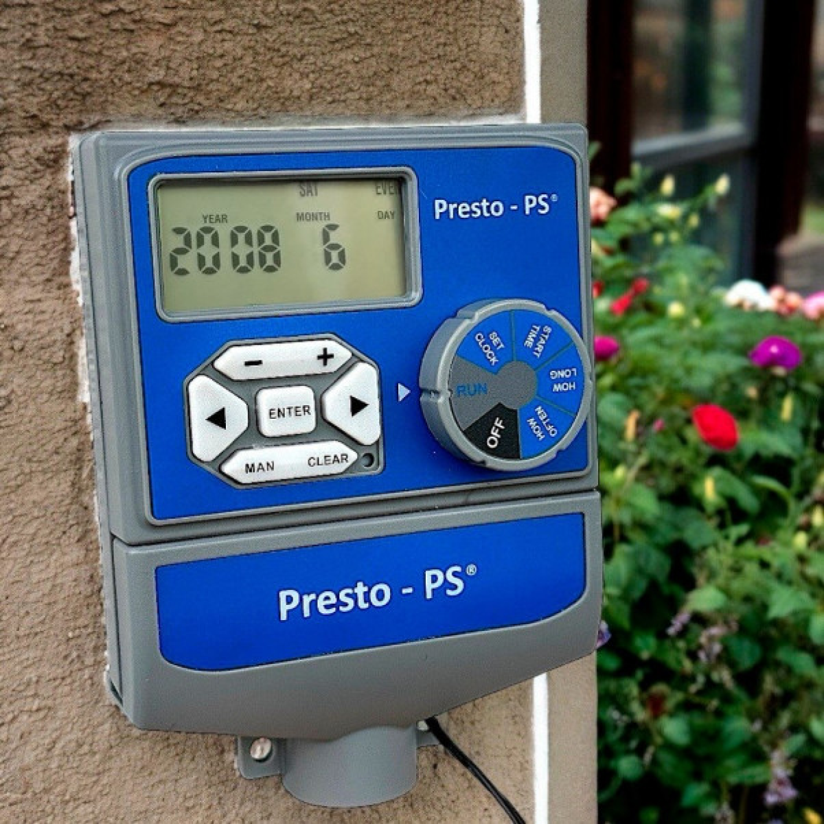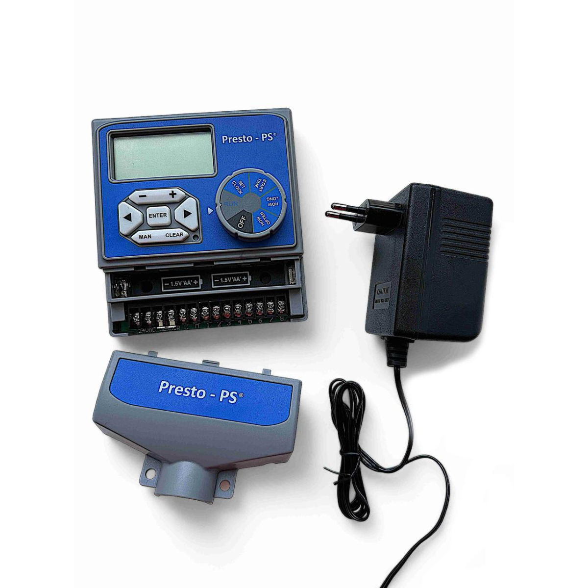 Особливості Електронний контролер поливу Presto-PS (7803) використовується в комбінації з електромагнітними клапанами для побудови автоматичних систем поливу як малого, так і великого розміру. Оптимально підходить для управління поливом газонів і галявин, можливе використання в теплицях і на городах за умови підключення до централізованого водопроводу. Дозволяє одночасне підключення до 8 незалежних ліній зрошення, що робить контролер єдиним приладом для управління поливом всієї дачної ділянки або фермерського господарства. Кожну лінію можливо налаштувати окремо, так само передбачено вихід для під“єднання майстер-клапана або реле запуску насоса для ввімкнення подачі води на вхід системи поливу. Час відстрочки поливу в разі дощу задається з інтервалом 24, 48 або 72 години, є також можливість примусового ручного ввімкнення поливу. Для кожного з клапанів можливо задати по 2 програми поливу, кожна з яких може мати до 4 сеансів з установкою часу старту і тривалості. Максимальна тривалість одного поливу - 240 хвилин. Періодичність зрошення встановлюється або на кожен день, або по парних/непарних днях, або на кількість днів поспіль від 1 до 32. Конструкція контролера передбачає можливість підключення датчика дощу, що дає змогу економити на зрошенні залежно від погодних умов. Корпус таймера виготовлений із пластику і передбачає встановлення в приміщенні. Процес монтажу таймера не займає багато часу. Інтуїтивно зрозумілий інтерфейс дає змогу легко запрограмувати контролер на потрібний режим та інтервал поливу. Живлення здійснюється від двох батарейок типу АА (до комплекту не входять). Призначений для роботи з клапанами з керуючою напругою AC 24V, 0,8 A. Для подовження терміну служби системи поливу рекомендується використання в системі подачі води фільтра грубого очищення. Переваги Широкий спектр регулювання режимів поливу; До 8 незалежних секцій зрошення; ЖК-дисплей, що легко читається; Індикація низького заряду батареї; Відображення поточного часу та режиму роботи; Простота монтажу; Легке та зручне програмування; Можливість роботи у парі з датчиком дощу; Захист від короткого замикання; Зручно використовувати у комбінації з клапанними боксами . Коротка інструкція з монтажу контролера: Змонтувати на початку кожної гілки поливу в клапанний бокс електромагнітний клапан;З іншого боку клапанів підключити труби магістрального водопостачання; Поруч із блоком клапанів у приміщенні на стіні закріпити контролер; Підключити клапани до контролеру;За наявності під“єднати до контролера датчик дощу; Вставити батарейки в контролер; Виставити потрібний час поливу.