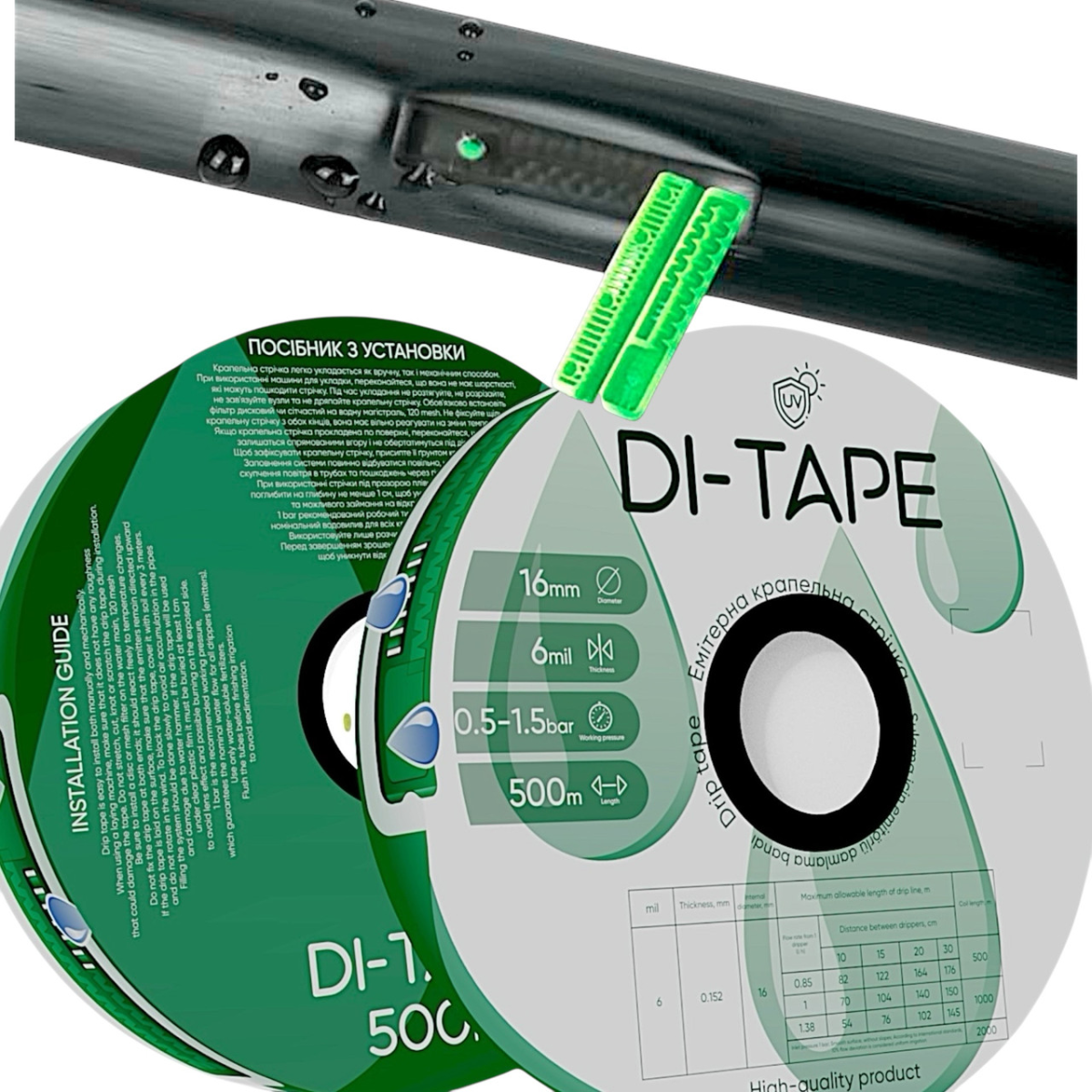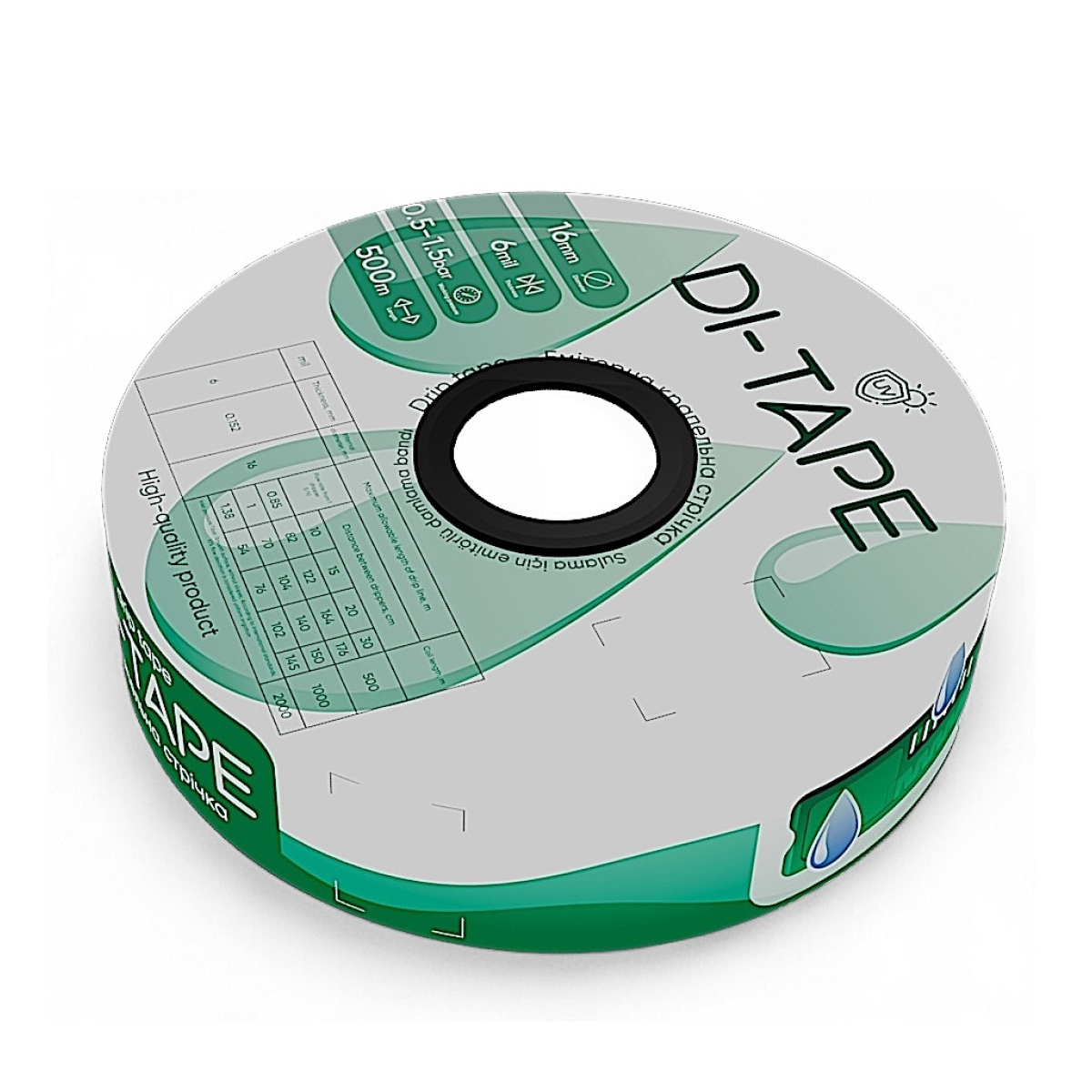 Крапельна стрічка емітерна Di-Tape крапельниці через 20 см витрата 1,00 л/год, довжина 2000 м, в упаковці - 1 шт. (DI-20-2000)