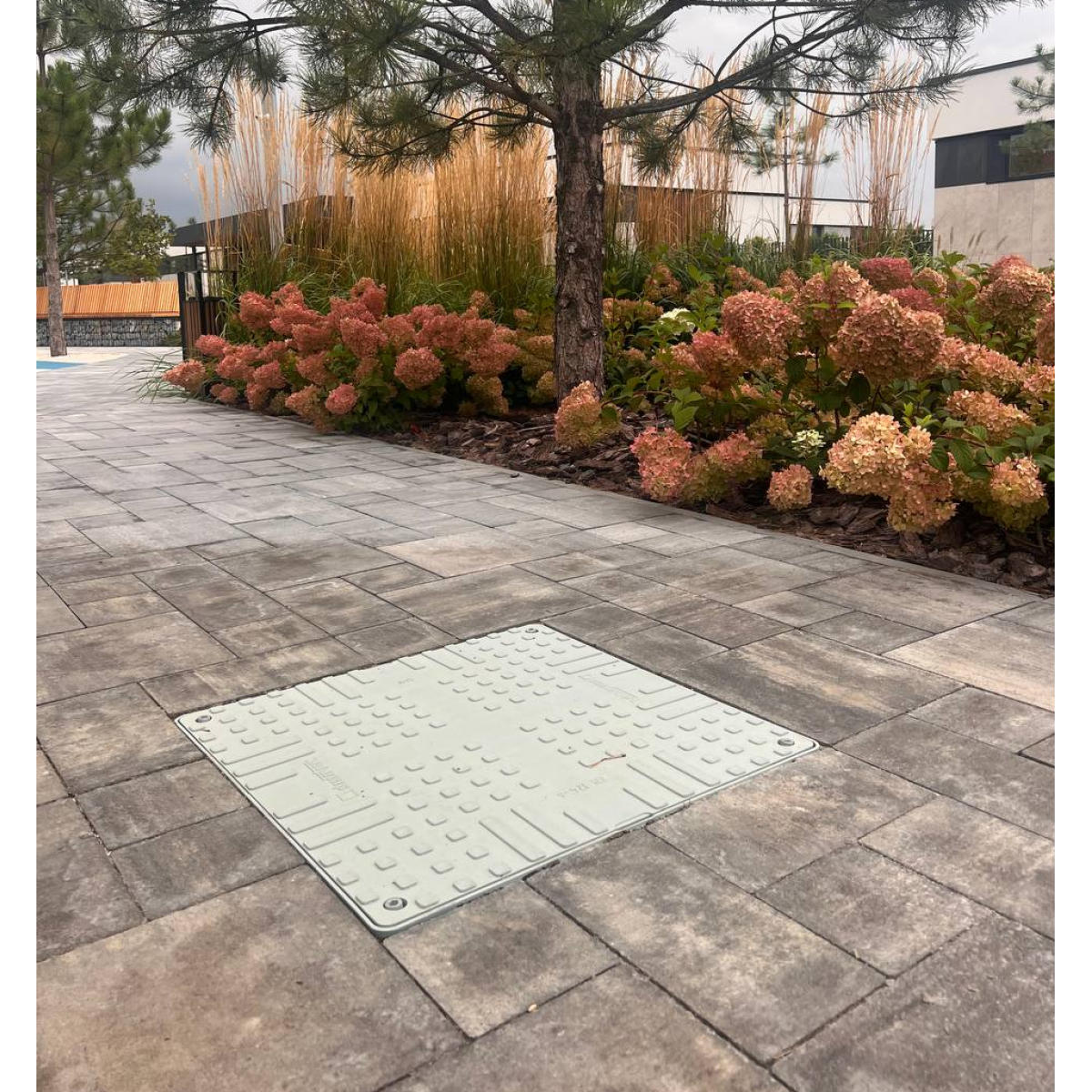 • Завдяки різній колірній гамі сада! люки ідеально вписуються в газон, тротуарну плитку або дорожнє