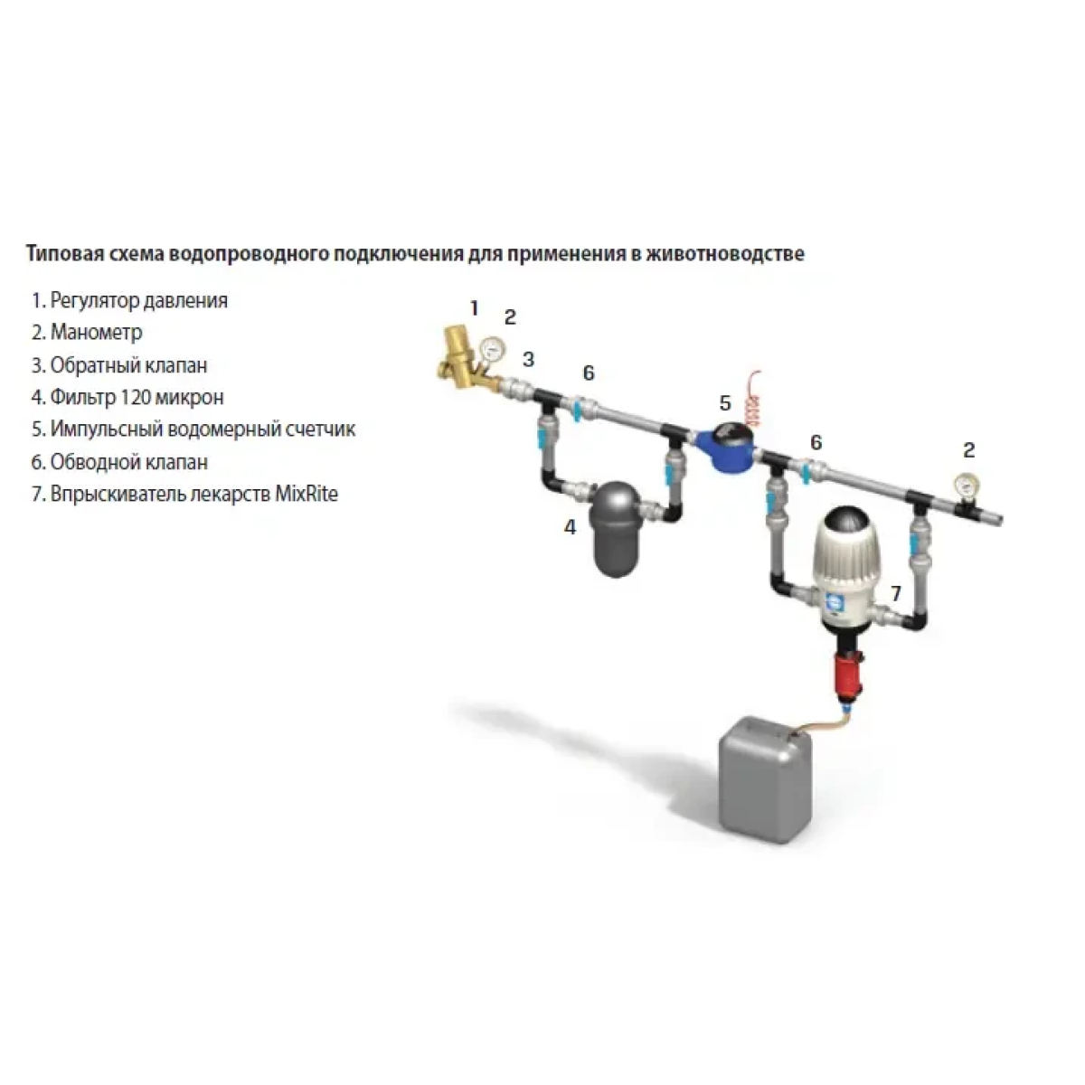 Дозатори MixRite у тваринництві - дають змогу із високою точністю контролювати дозування препаратів (антибіотики, пробіотики, ферменти, вітаміни, мікроелементи) , що вводяться через систему поніювання.