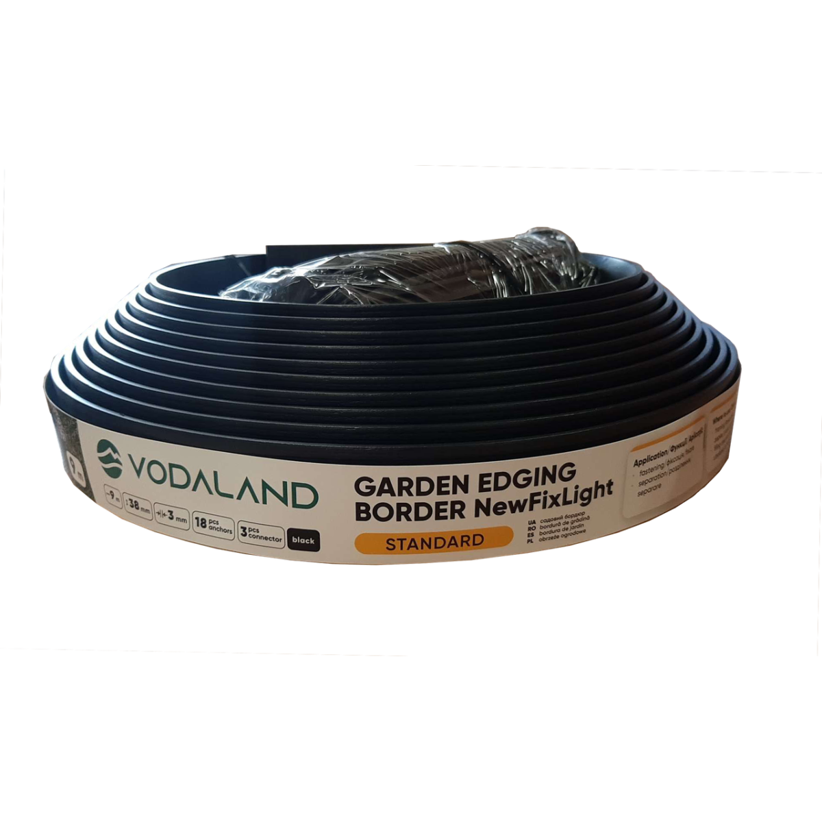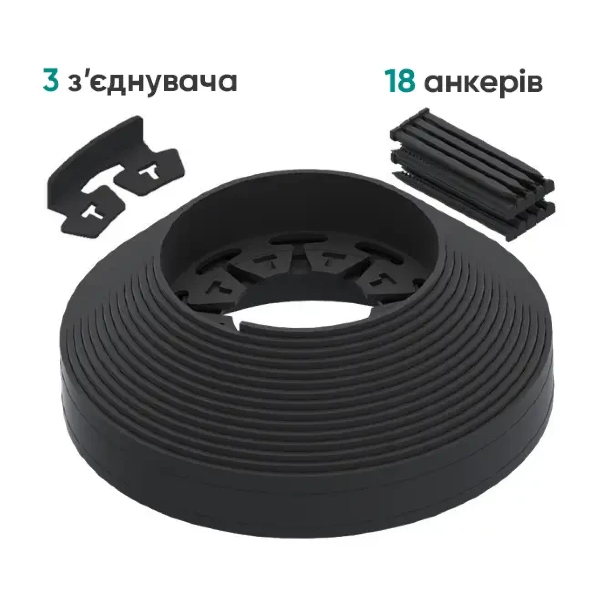 Бордюр садовий NewFixLight 9м чорний в упаковці з анкерами (18 шт) та з“єднувачами (3 шт)