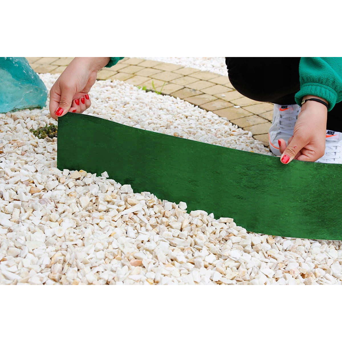 Бордюрна стрічка виготовлена з пластику, тому не крихка, на неї можна наступати.