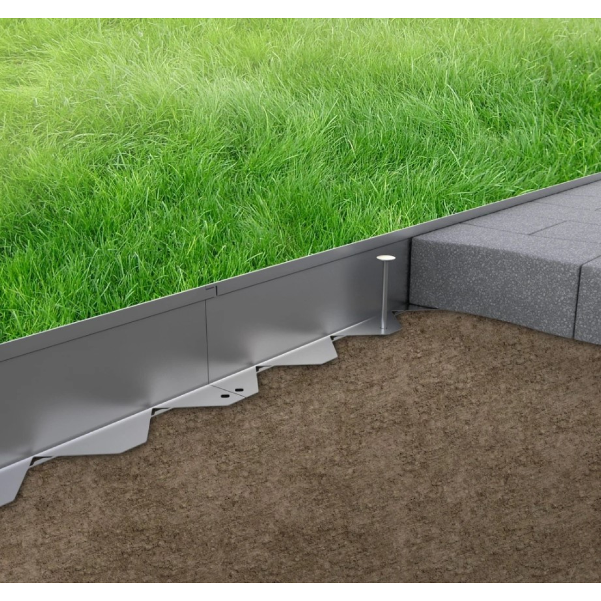 Бордюр газонний із оцинкованої сталі - універсальний продукт і широко використовується у ландшафтному дизайні та при облаштуванні садових і паркових доріжок. Призначений для огородження тротуарів, клумб та газонів у міських садах, ландшафтних парках, на приватних територіях, а також у випадках, коли використання пластикових бордюрів неможливе (висока температура/або підвищене навантаження при експлуатації поверхні). Сталевий бордюр для клумб можна використовувати для будь-якого типу поверхні: бруківка, тротуарна плитка, камінь, гравій, земля, кора, пісок, трав“яне покриття та багато іншого.