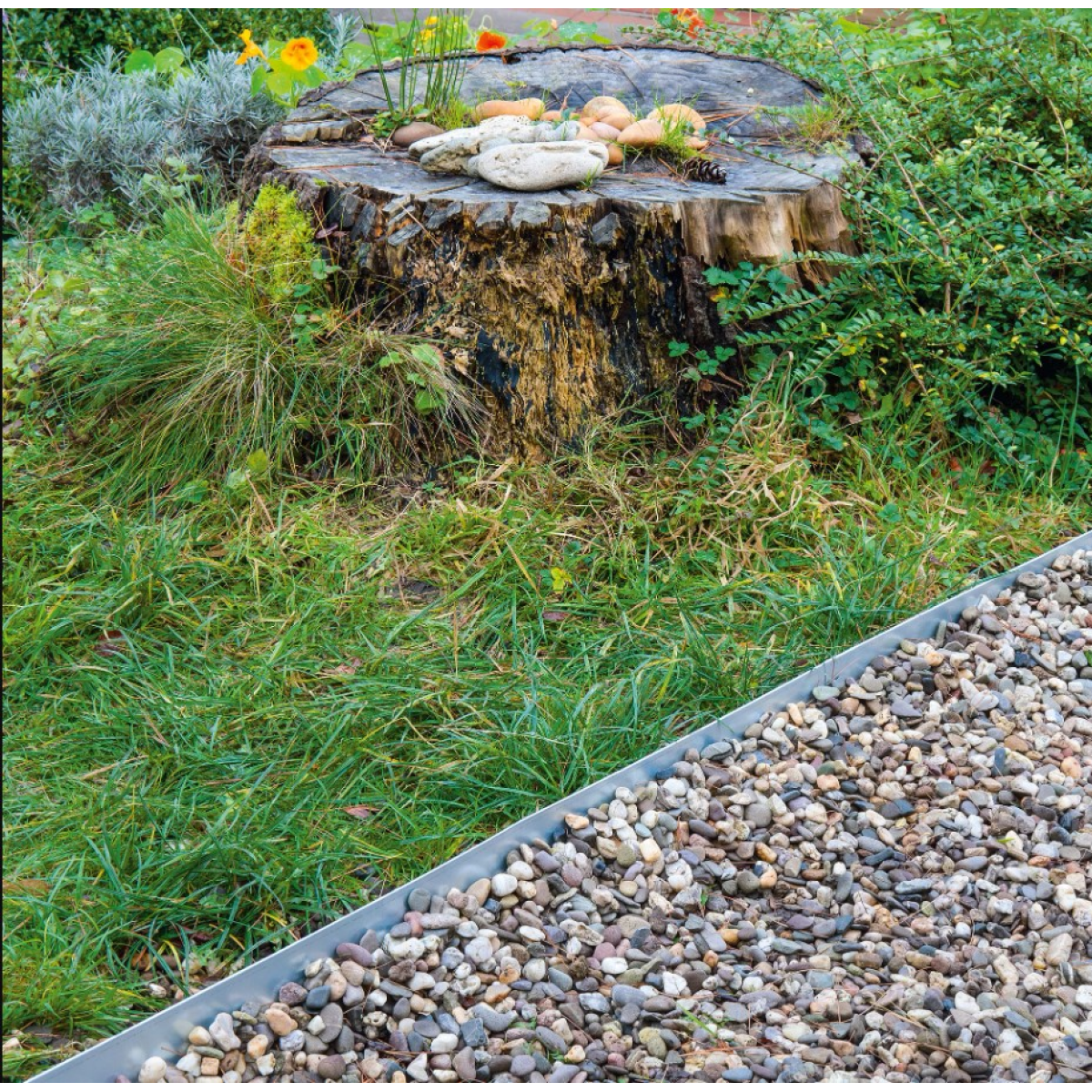 відділення газону від кори, гальки, декоративного каміння;