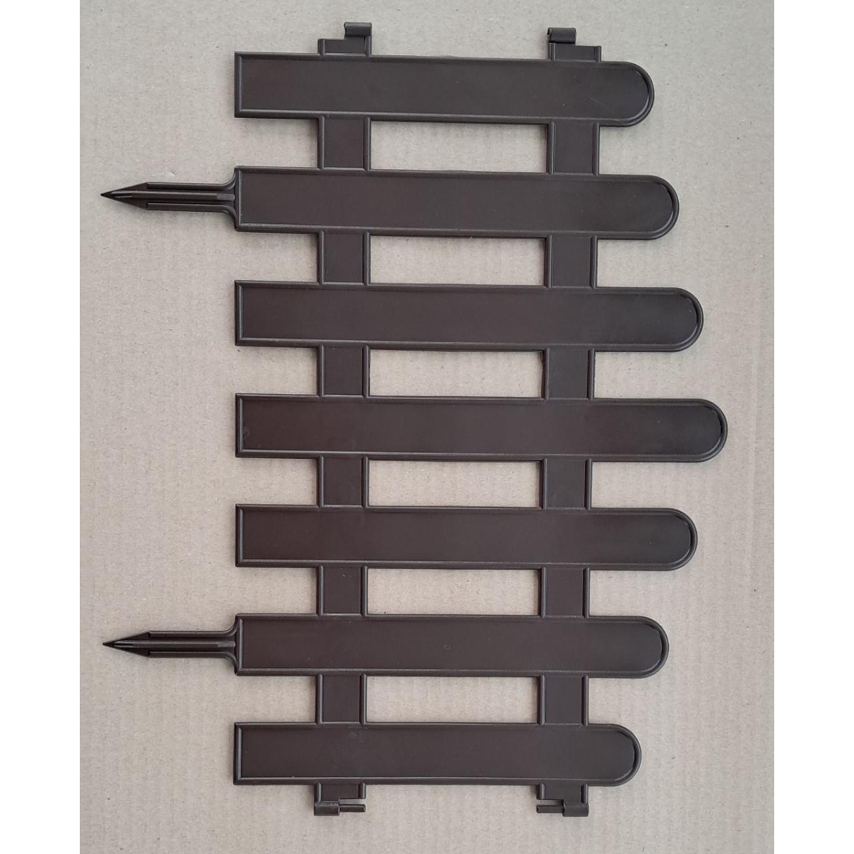 Паркан декоративний коричневий 39,5 см × 27 см Створіть акуратний і стильний вигляд вашого саду або клумби за допомогою декоративного паркану! Коричневий паркан висотою 27 см і довжиною 39,5 см ідеально підходить для оформлення квітників, доріжок, газонів і палісадників. Переваги декоративного паркану: ✅ Натуральний вигляд — класичний коричневий колір гармонійно доповнює будь-який ландшафт ✅ Легкість монтажу — просте з“єднання секцій без додаткових інструментів ✅ Міцність і довговічність — виготовлений із якісного пластику, стійкого до погодних умов ✅ Багаторазове використання — можна легко демонтувати та перенести в інше місце Основні характеристики: • Колір: коричневий • Довжина секції: 39,5 см • Висота: 27 см • Матеріал: ударостійкий пластик Декоративний паркан — це швидкий та доступний спосіб надати вашій ділянці доглянутого вигляду! ???? Оформлюйте замовлення прямо зараз і створіть свій ідеальний ландшафт!